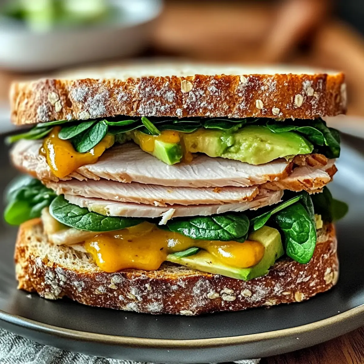 As I stood in my kitchen, the aroma of toasted bread filled the air, while the vibrant colors of ripe avocado and fresh spinach beckoned me to create something delightful. Enter the Honey Mustard Turkey Avocado Sandwich, a quick meal that effortlessly balances flavors and nutrients. In just a few minutes, this satisfying sandwich delivers not only a punch of taste but also vital nutrients, making it an ideal choice for busy days. Customize it to fit your cravings—whether you prefer swapping turkey for roast beef or adding a kick with jalapeños, the options are endless. Are you ready to elevate your lunch game with this easy, delicious recipe? Let’s dive in!