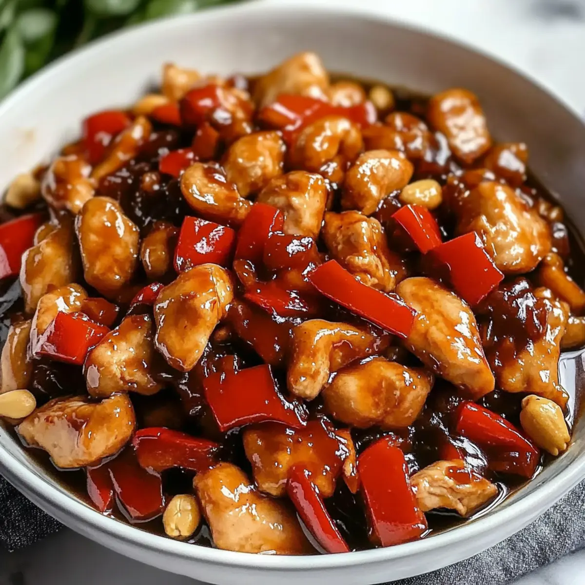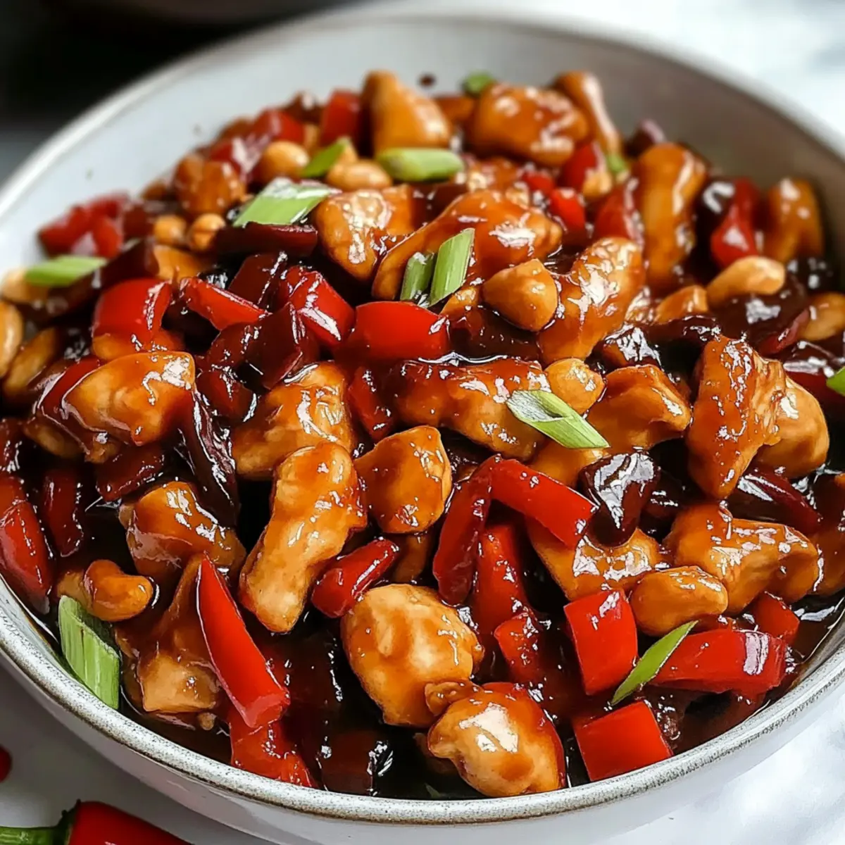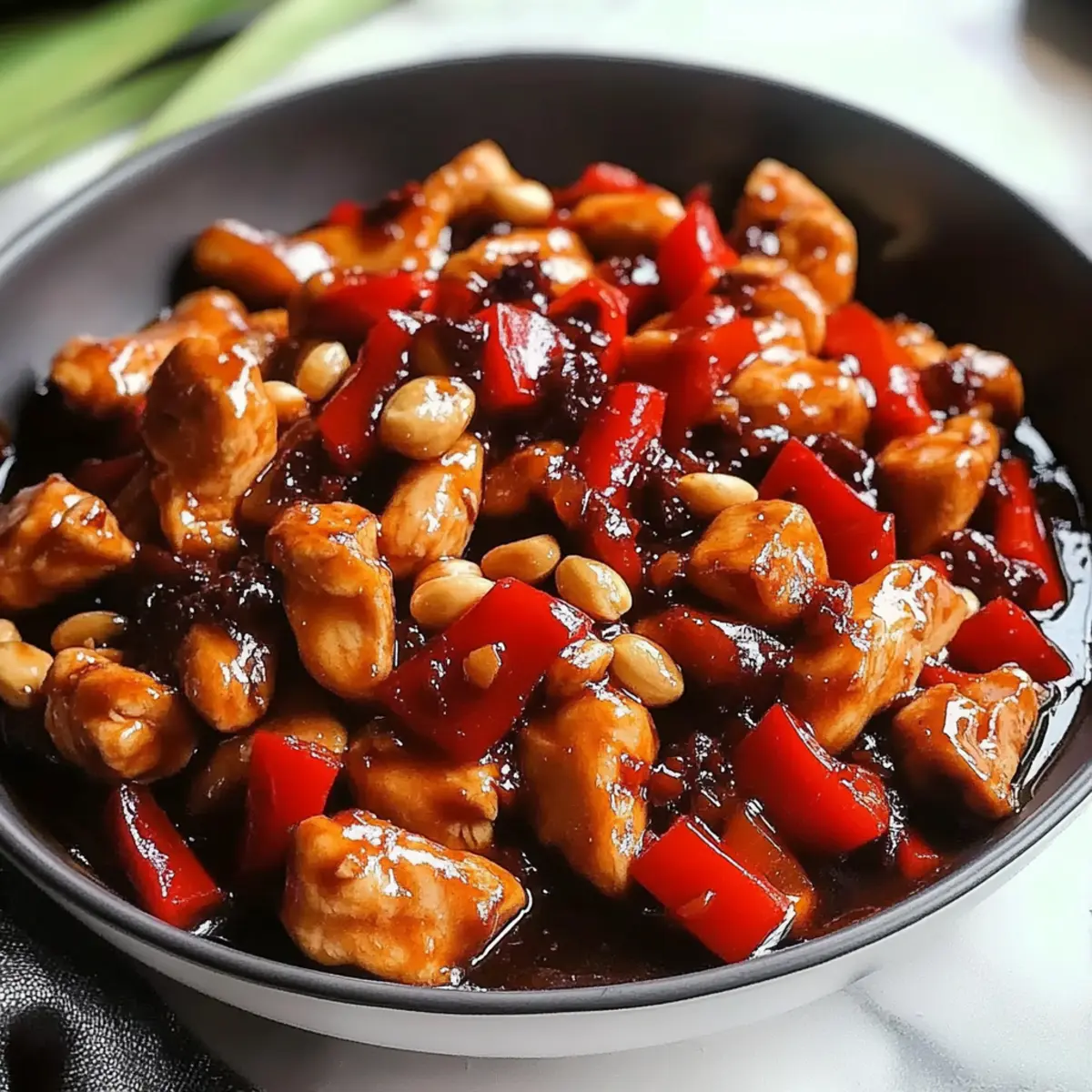 Enjoy a delicious Kung Pao Chicken meal with tender chicken, crunchy peanuts, and vibrant bell peppers in just 30 minutes!