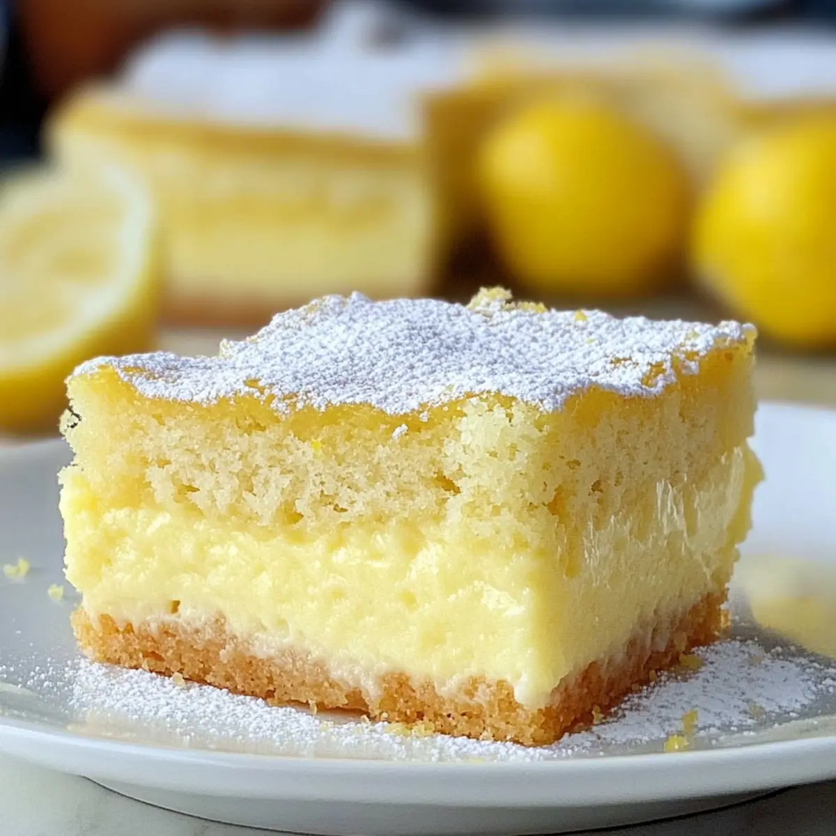 Reheating: If you prefer a warm treat, gently reheat slices in the microwave for about 10-15 seconds. This will bring back the fluffy layers of your Lemon Custard Cake beautifully!