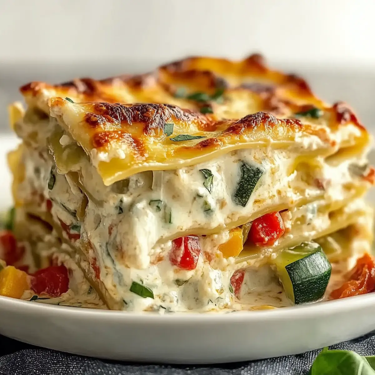 Indulge in a vegetarian delight with this Loaded Veggie White Lasagna, packed with fresh veggies and creamy sauce.