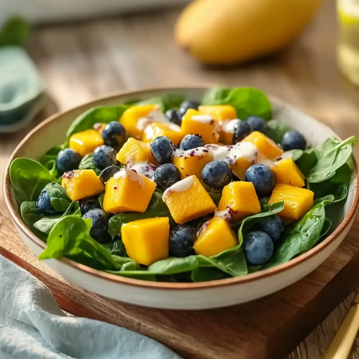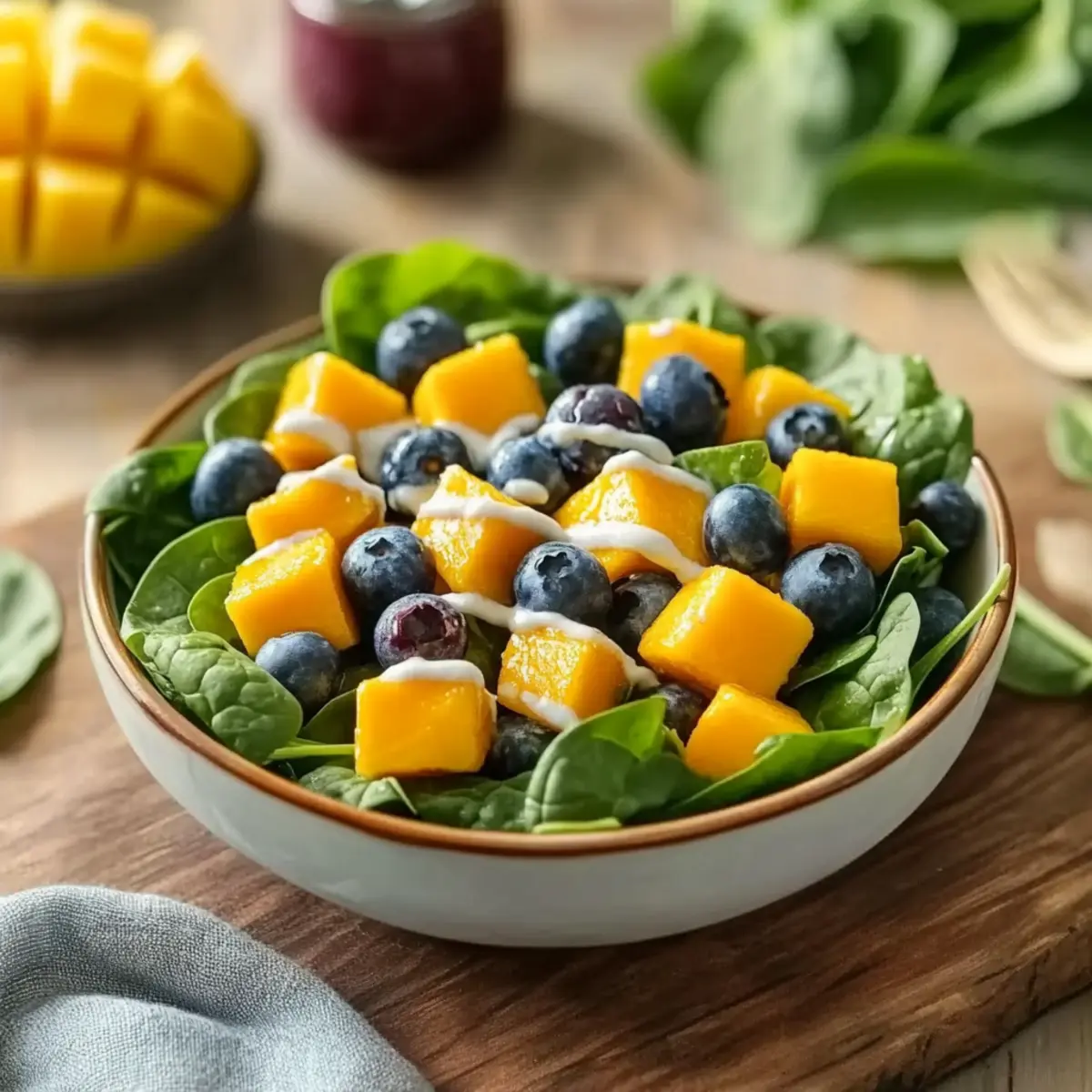 Enjoy the delightful array of flavors in this mango blueberry spinach salad, perfect for any occasion!