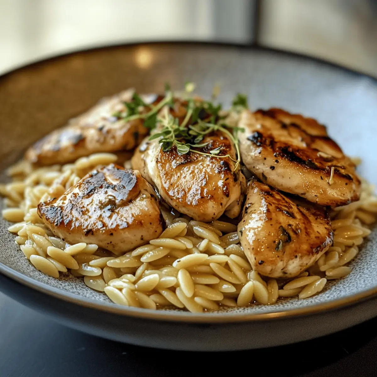 To plate, scoop the reserved orzo onto each plate and layer the succulent chicken on top. Drizzle the rich Marsala sauce over the chicken, ensuring each piece is generously coated. Garnish with freshly chopped herbs like thyme or rosemary for an aromatic finish and enjoy your deliciously cozy Marsala Chicken Orzo!