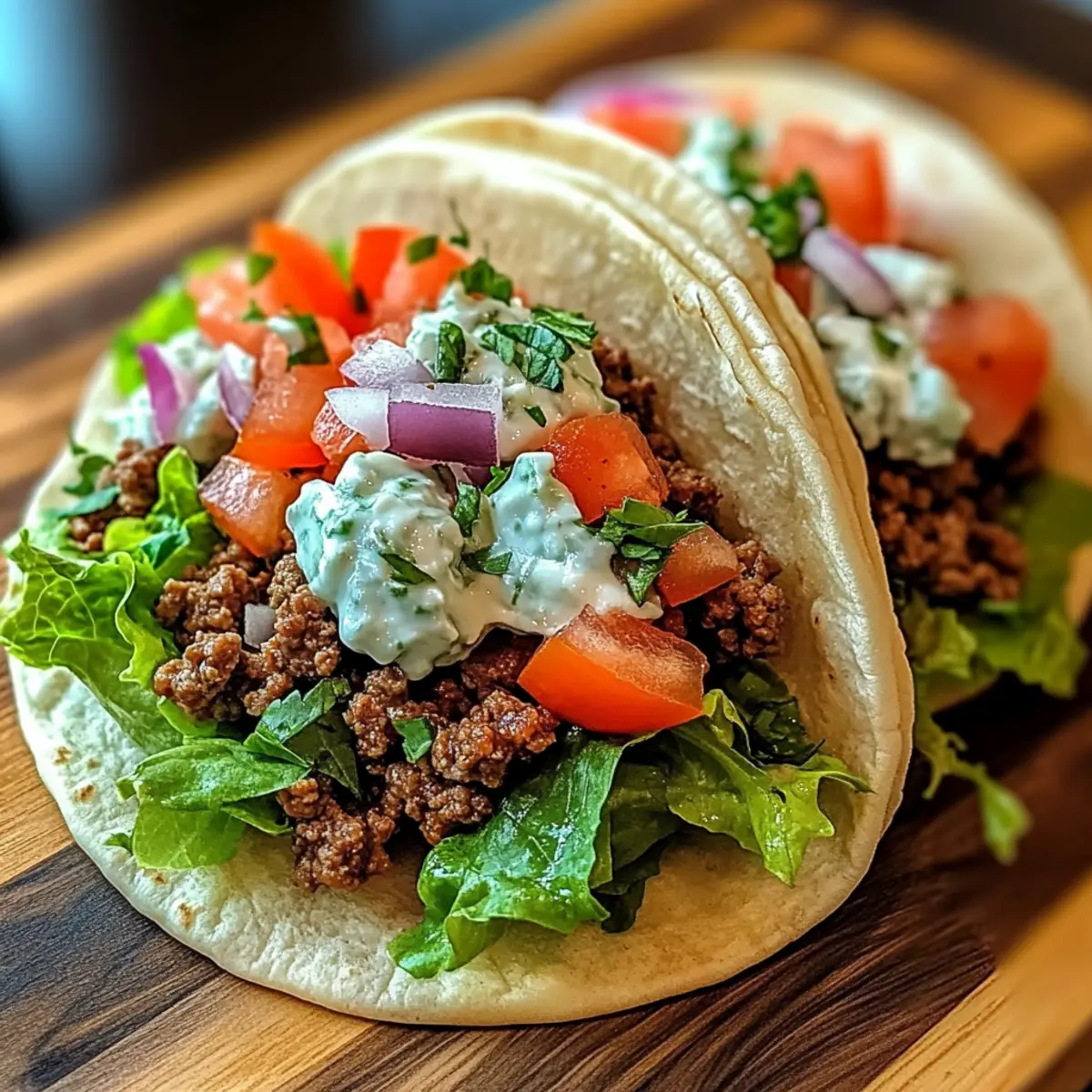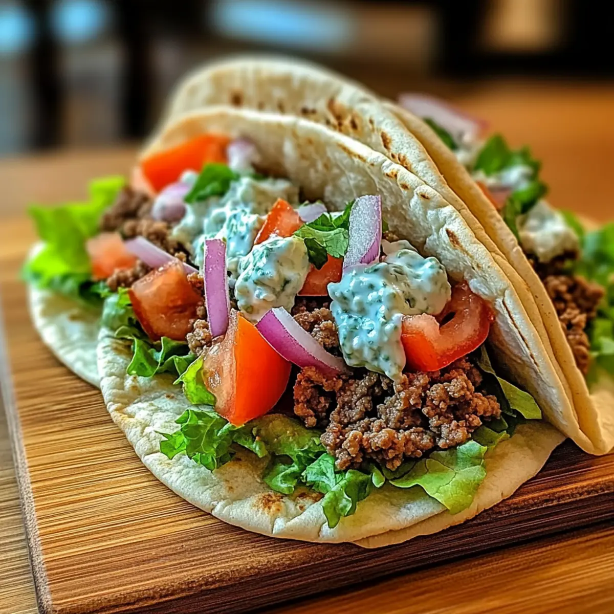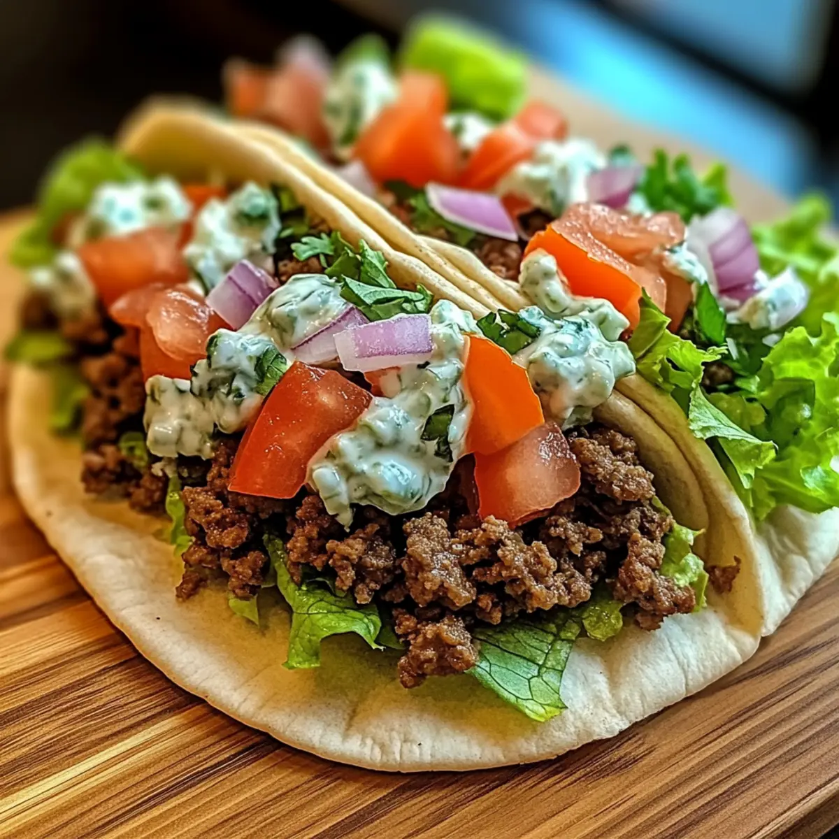 Take your warmed pita and place a generous scoop of the seasoned ground beef in the center. Layer on fresh toppings such as sliced red onions, diced tomatoes, and crisp lettuce leaves. Drizzle your prepared tzatziki sauce on top for a refreshing kick, ensuring every bite is packed with Mediterranean Bliss.