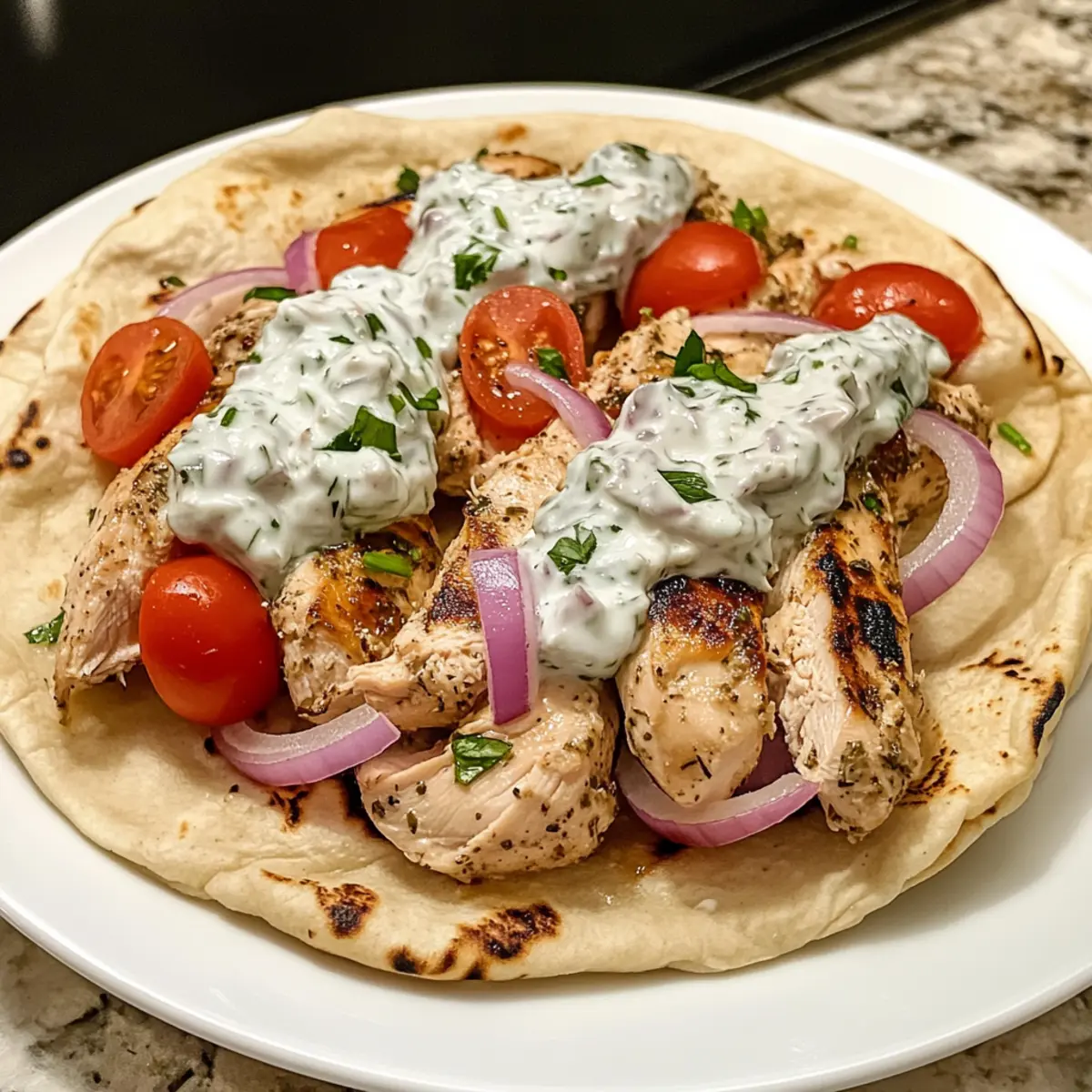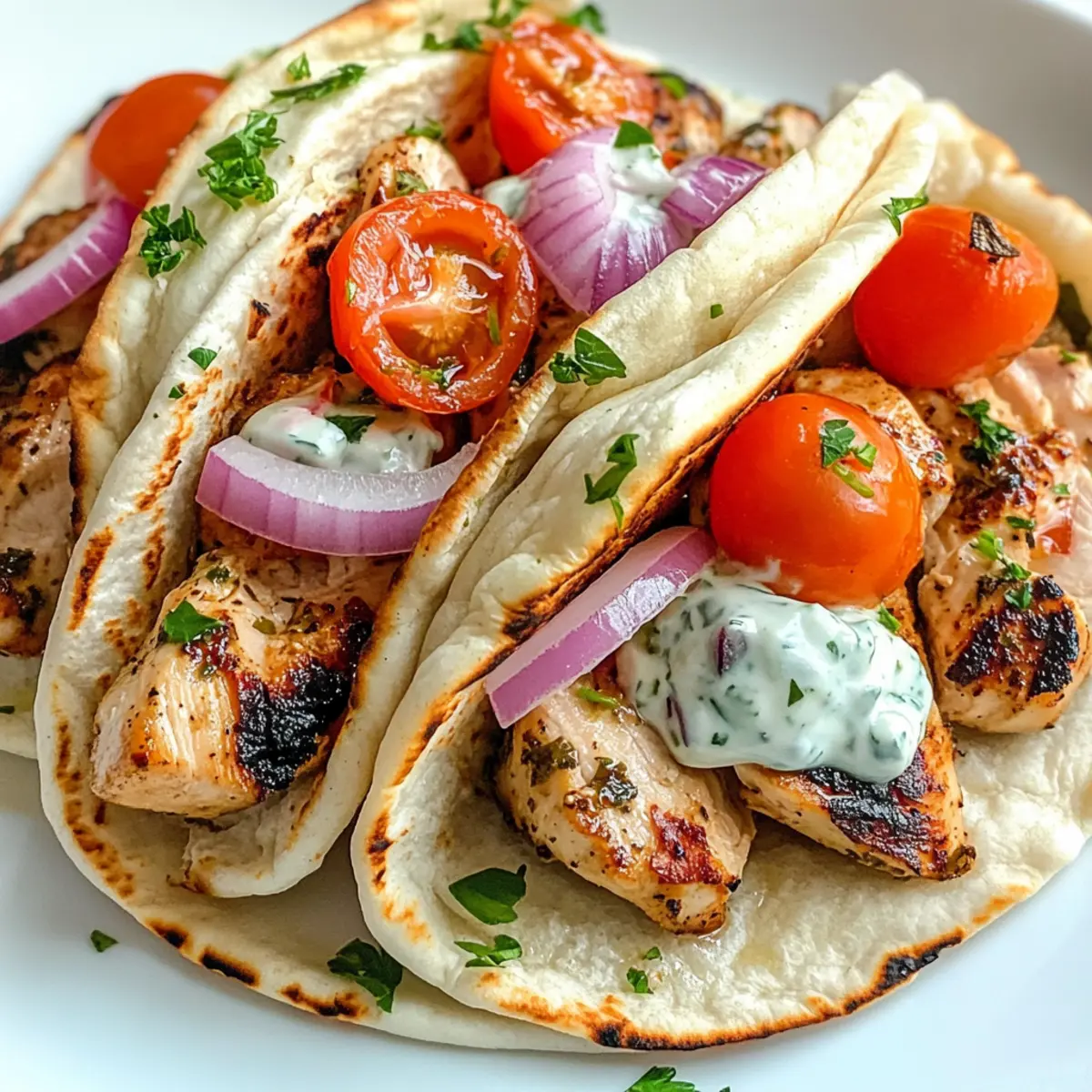 - Assemble the Gyros: Warm pita bread until pliable. Slice cooked chicken and place in the center of each pita. Top with sliced tomatoes, red onion, and tzatziki sauce.