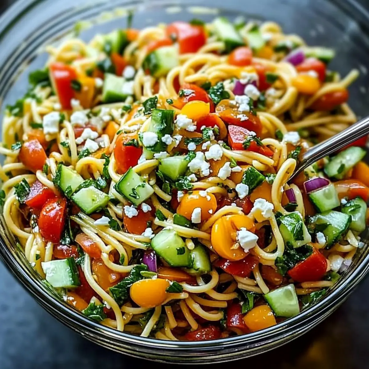 As I wandered through a bustling marketplace, the sight of vibrant produce caught my eye—plump tomatoes, crisp cucumbers, and fragrant herbs all beckoning to be part of something wonderful. That’s how my Bright Mediterranean Pasta Salad with Feta and Olives came to life! This quick, colorful dish is perfect for those moments when you crave a tasty meal but want to skip the lengthy prep. In just 20 minutes, you can delight your loved ones with a refreshing salad that’s not only vegetarian but also ideal for meal prep or potlucks. Plus, every bite is a celebration of sunny Mediterranean flavors, making it a true crowd-pleaser. So, are you ready to bring a taste of the Mediterranean to your dinner table? Let’s dive into this delicious recipe!