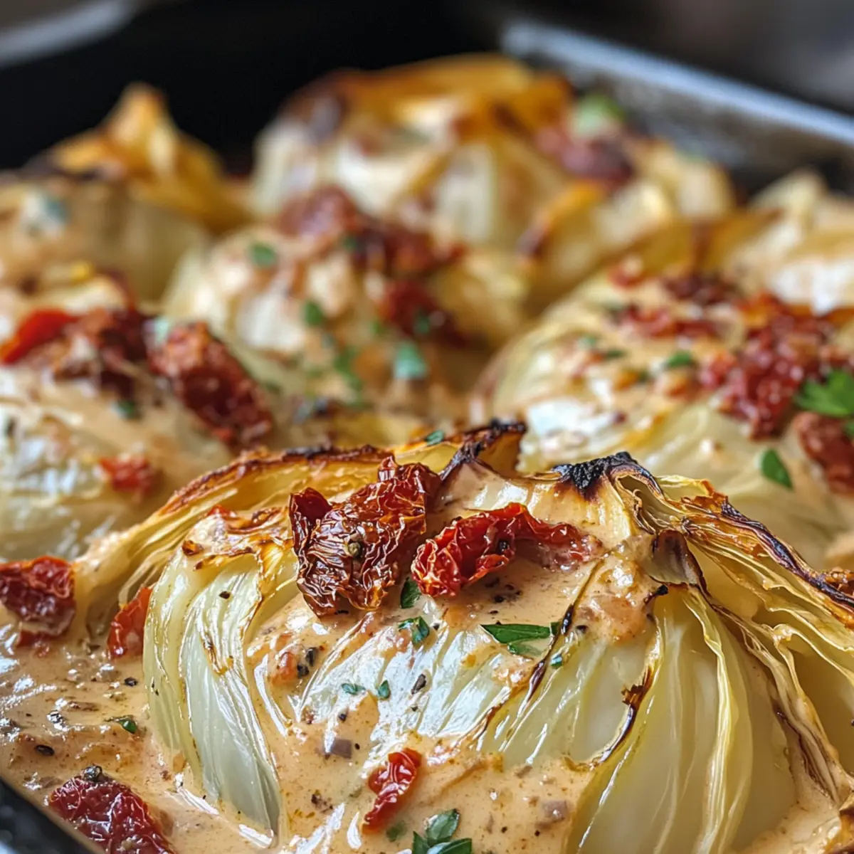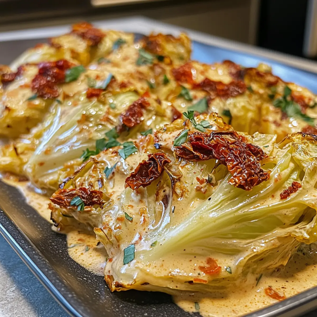 Once baked, let the melting cabbage rest for 5 minutes before serving. This resting period allows flavors to settle. Finally, garnish with freshly chopped parsley for a burst of color and freshness. Your Marry Me Melting Cabbage with Creamy Tuscan Sauce is ready to impress the dinner table!