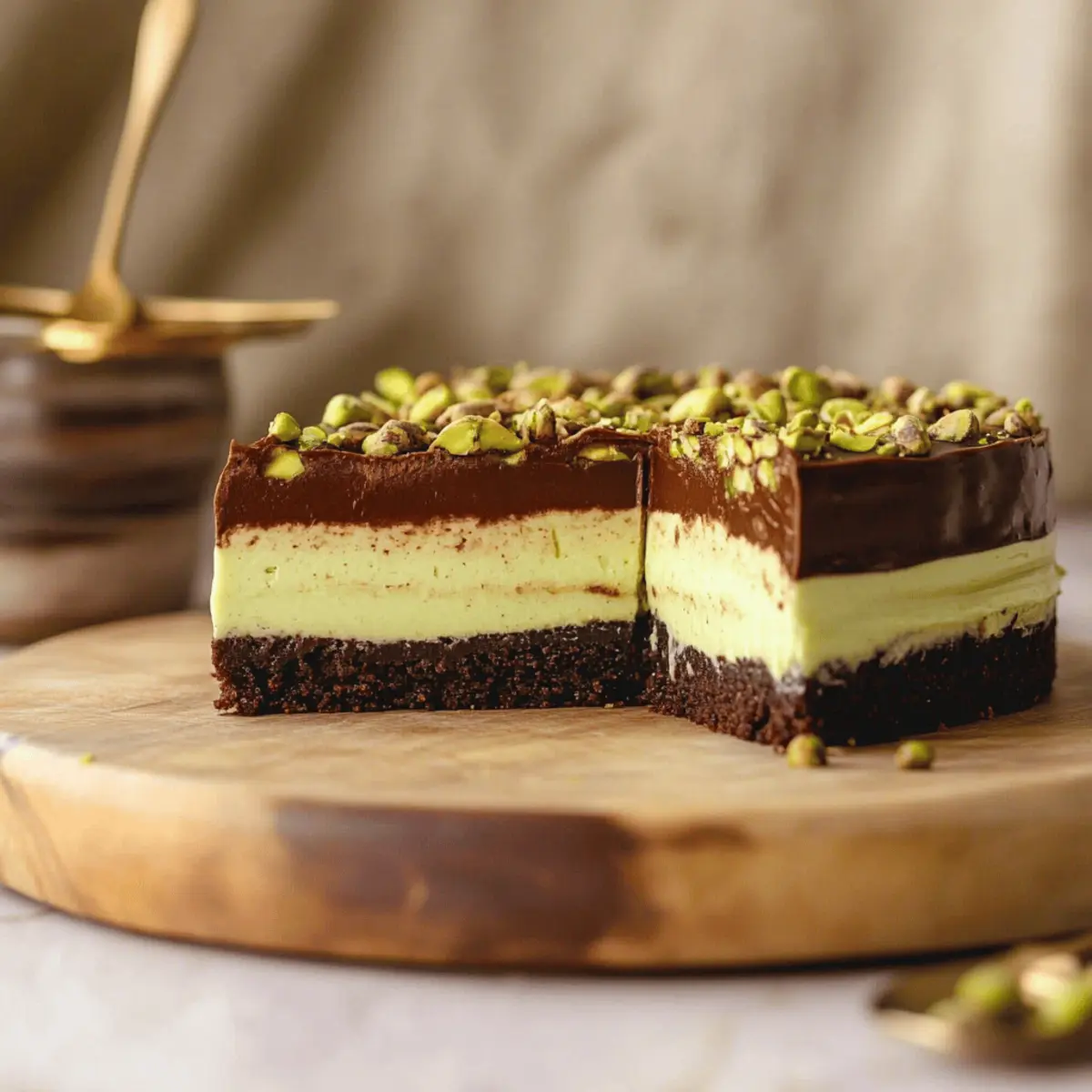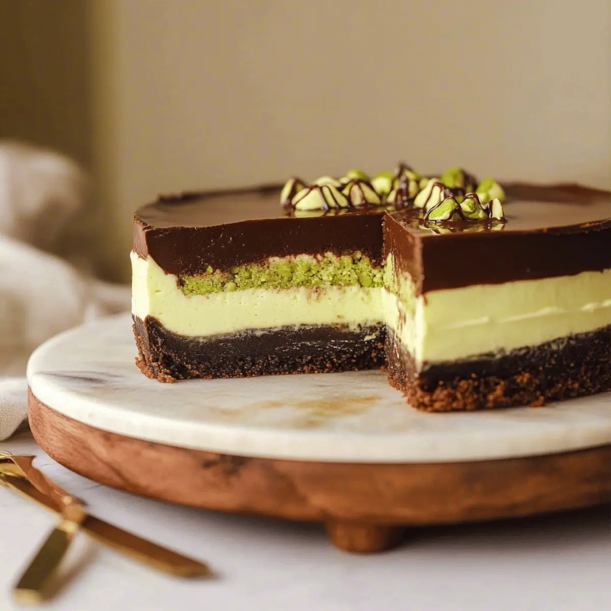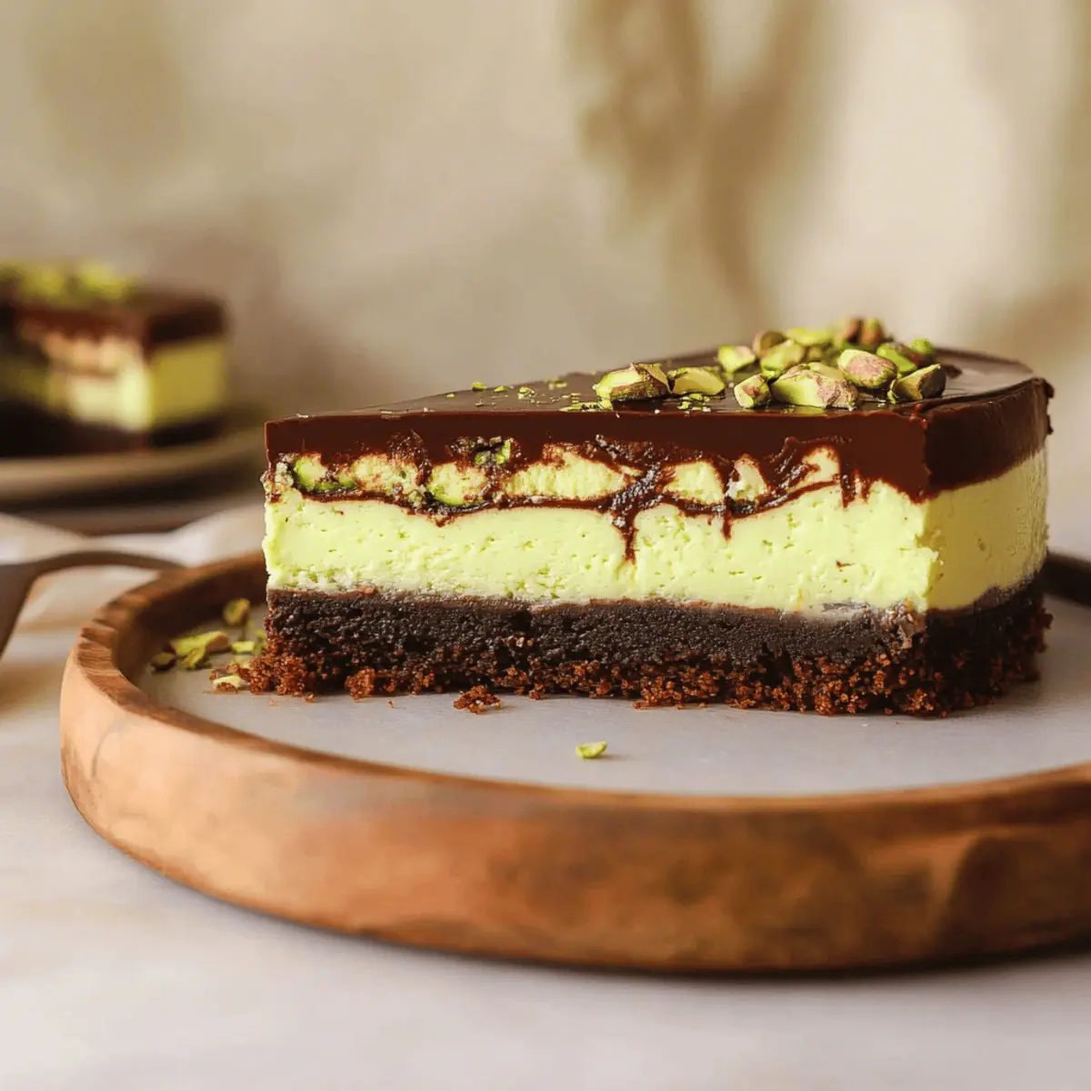 • Chocolate Selection Matters: Choose semi-sweet or dark chocolate for the ganache; this balance enhances the dessert’s richness without overpowering the pistachio flavor in the cheesecake.