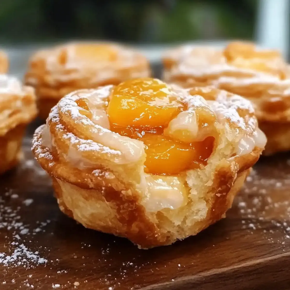 Flaky Perfection: Each bite of these cruffins delivers a delightful crisp texture that perfectly complements the tender peach filling.
