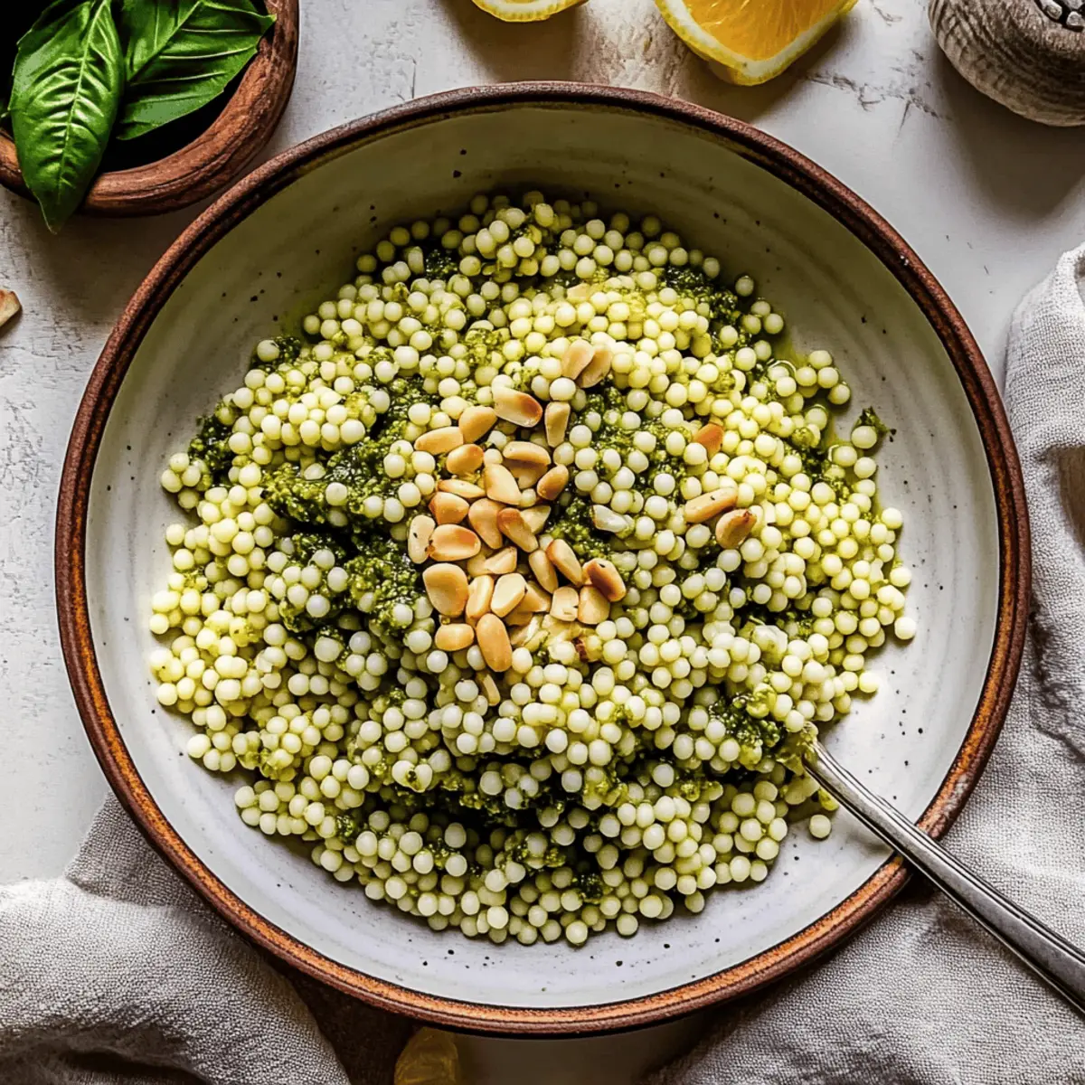 On a sunny afternoon, the aroma of fresh basil and garlic filled my kitchen, pulling me away from a pile of laundry to my bubbling pot of pearl couscous. This Simple Italian Pesto Couscous is not just a recipe; it’s a joyous escape into the heart of Mediterranean cuisine. Ready in just 15 minutes, this dish is a lifesaver for those busy weeknights when you crave something vibrant yet effortlessly chic. With the enchanting flavors of homemade pesto—either classic or a playful twist—each bite transports you straight to Italy’s sun-kissed landscapes. Plus, it’s gluten-free and vegetarian, making it a crowd-pleaser for any gathering or a delightful light meal. Want to know how to elevate your side dish game with this quick gem? Let’s dive into the deliciousness!