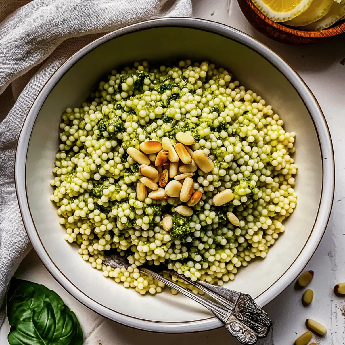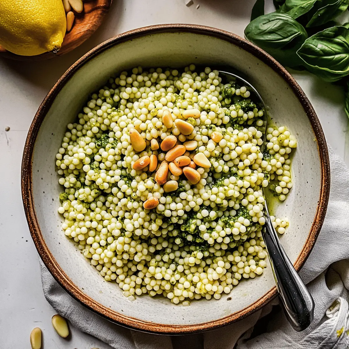 These Pesto Couscous make ahead options are a game changer for busy home cooks! You can prepare the couscous and let it cool completely, storing it in an airtight container in the refrigerator for up to 3 days. The pesto can also be made ahead of time and stored separately (or you can use store-bought) for up to 5 days in the fridge, keeping its vibrant flavor intact. When it’s time to serve, simply fluff the couscous, stir in your fresh pesto, and toast the pine nuts right before serving to maintain their crunch. This way, you’ll enjoy delicious, quick results with minimal effort on those hectic weeknights!