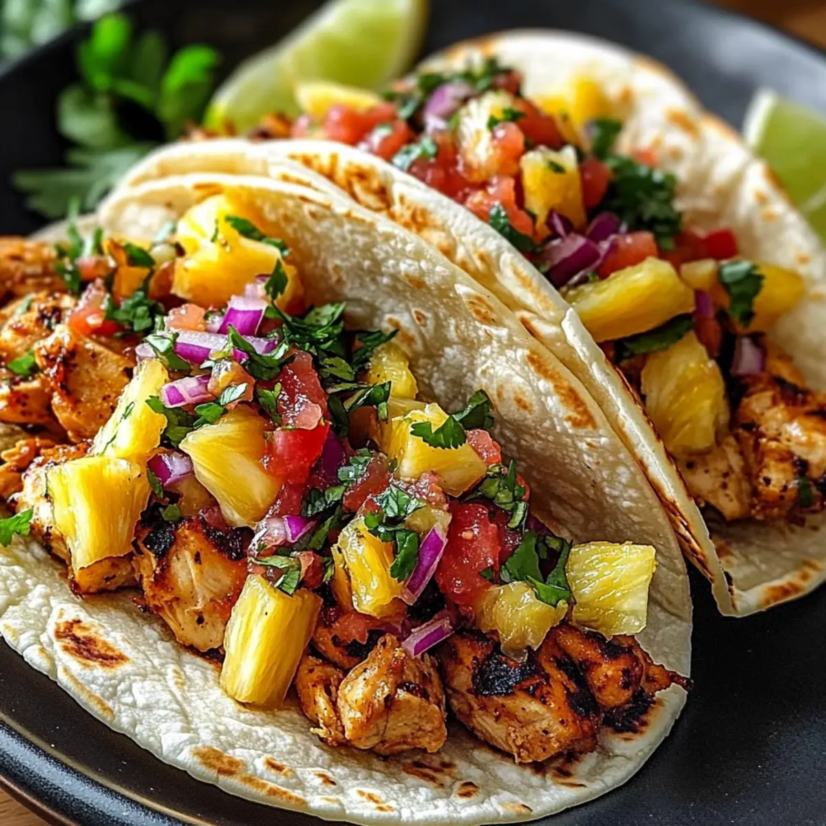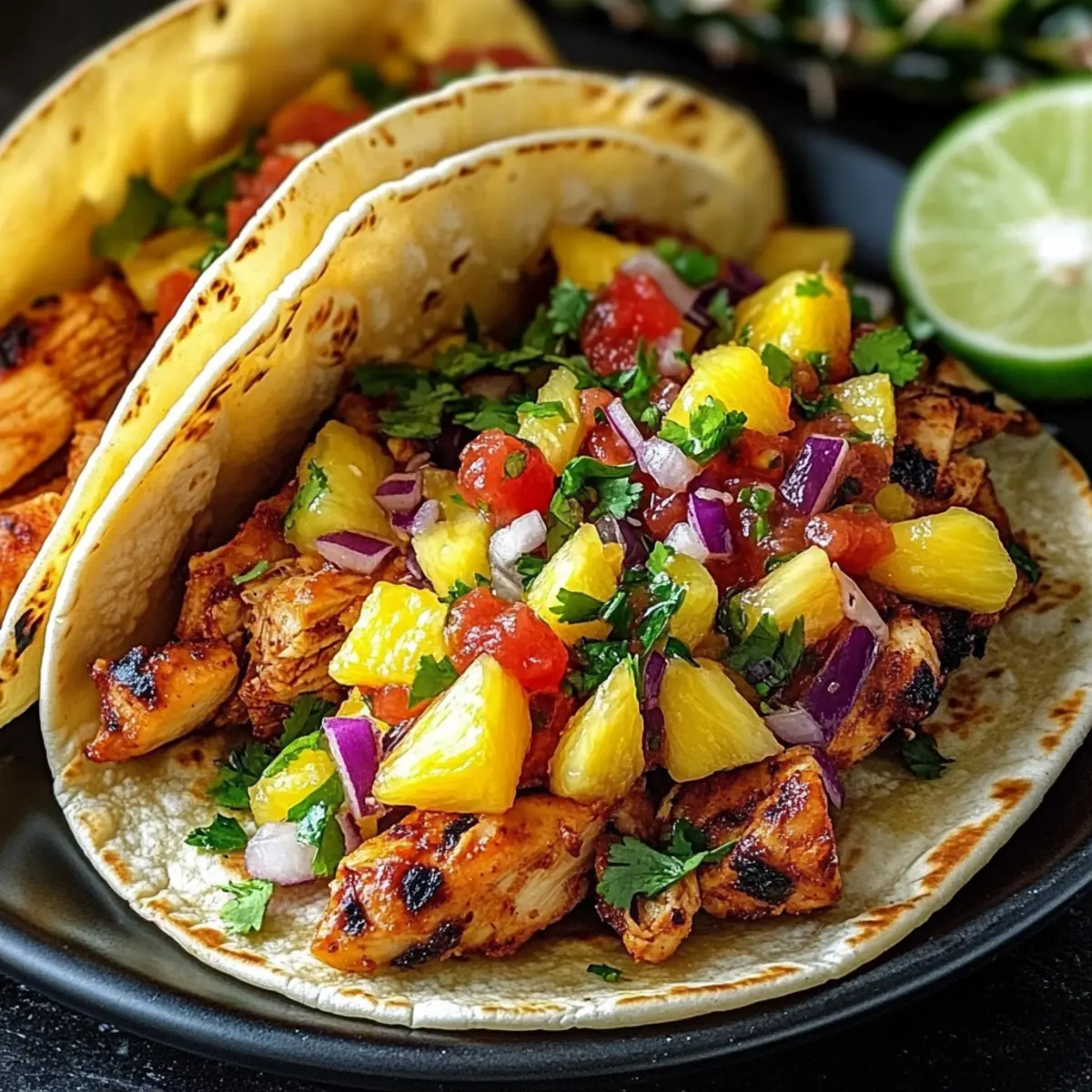 Freshness at its finest: These tacos combine juicy chicken with refreshing pineapple salsa, ensuring each bite bursts with flavor.