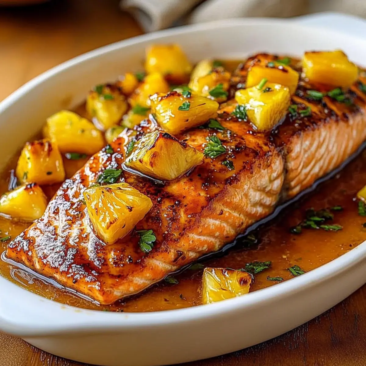 Tropical Flavor Explosion: The sweet and savory combination of pineapple and soy sauce creates an irresistible glaze that elevates the salmon.