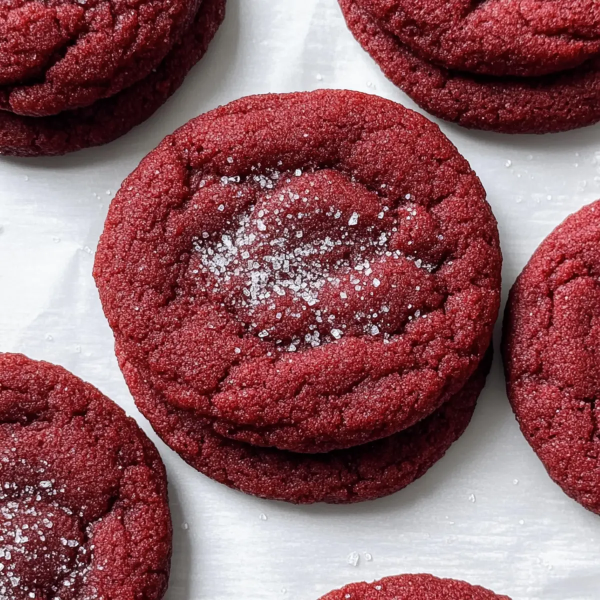- Decorative Options: Experiment with toppings! Consider adding chopped nuts or sprinkles alongside the red sanding sugar for a fun twist to your Red Velvet Cookies.