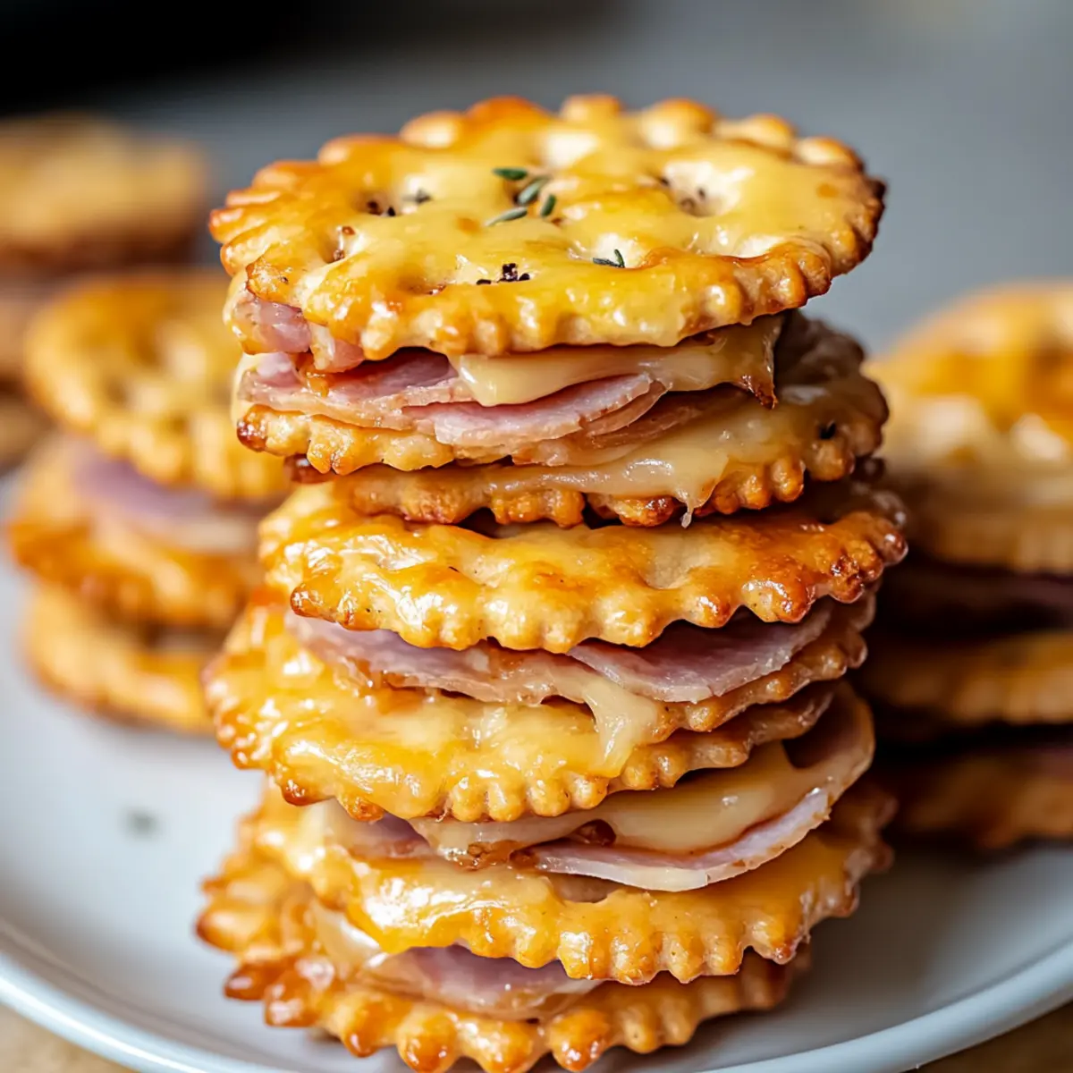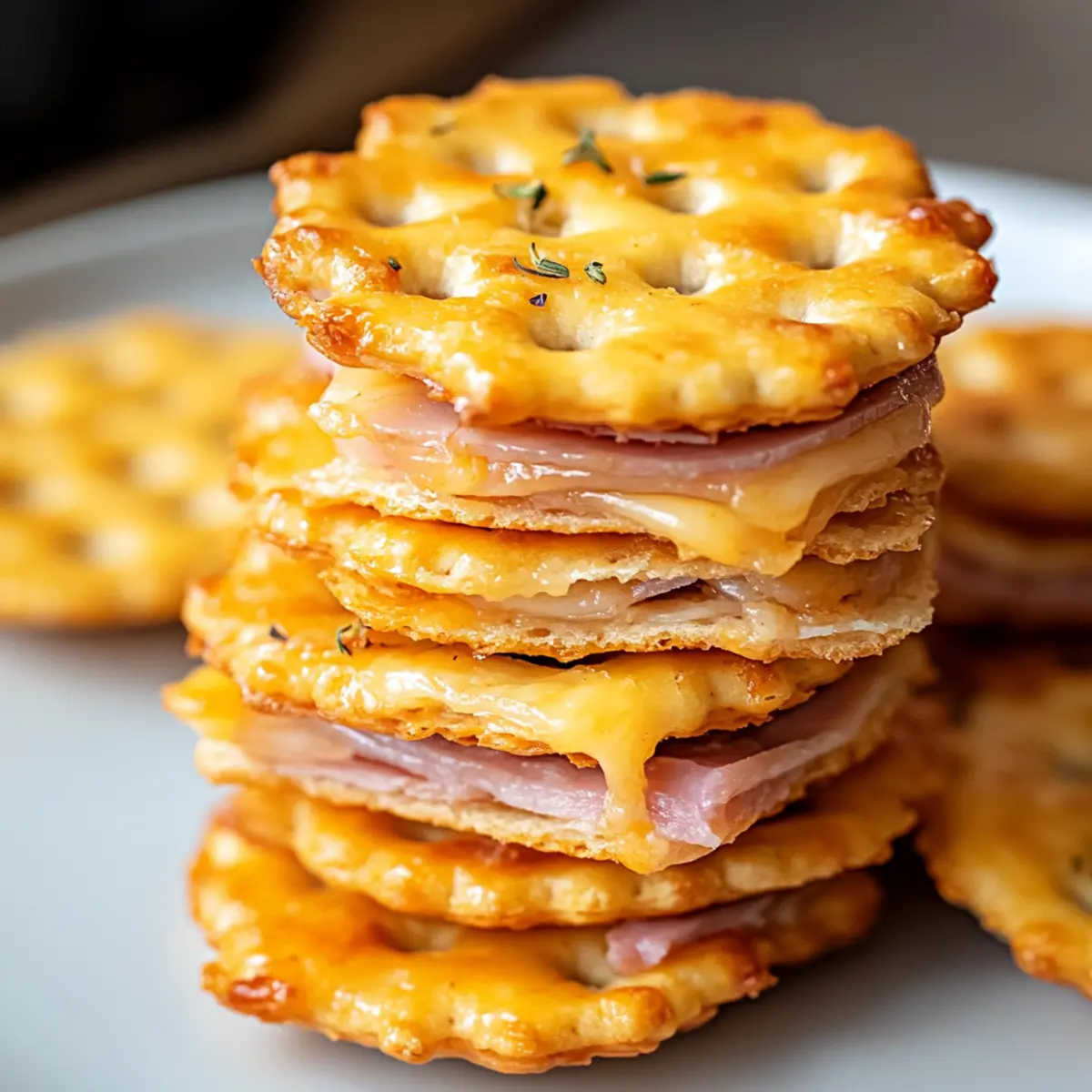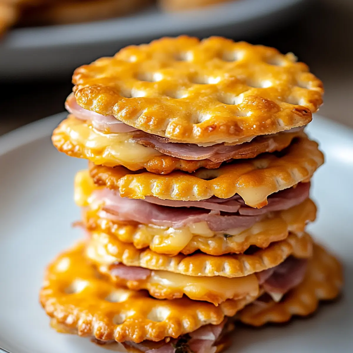 - Lay out Ritz Crackers in pairs on the baking sheet. Add desired savory fillings and top with another cracker.