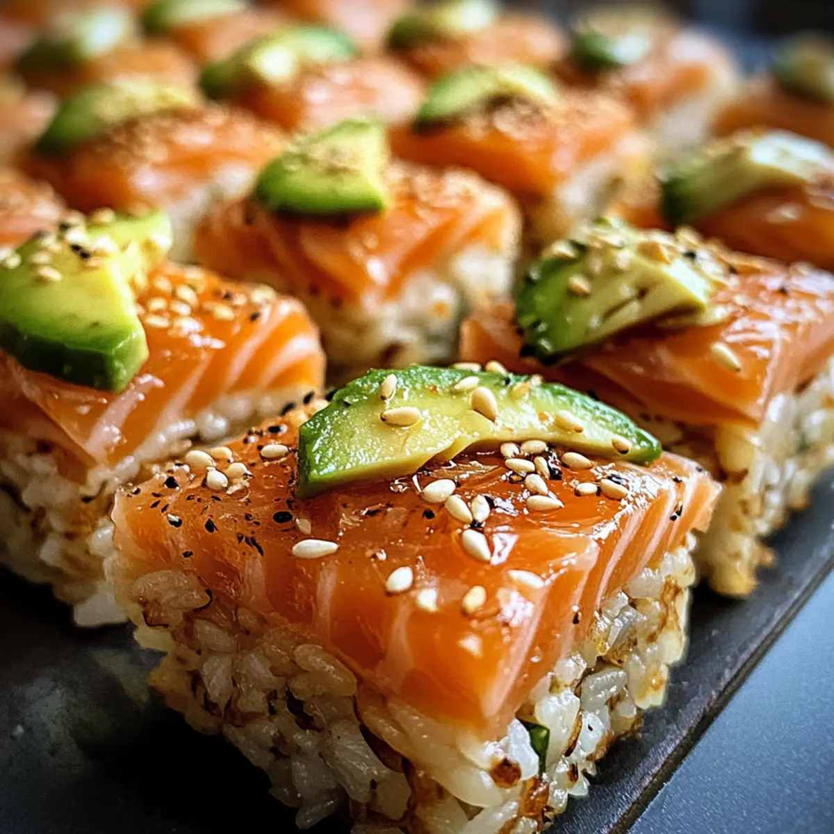 Absolutely! You can prepare the sushi rice and salmon mixture in advance. Store the rice in the fridge once it’s cool and the salmon mixture can be prepared the same day. Just remember to assemble and fry the crispy rice squares right before serving for that perfect crunch and freshness!