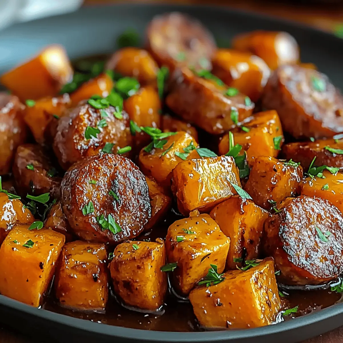 Garnish for Freshness: Always finish your dish with fresh parsley or other herbs; it adds a refreshing contrast to the rich flavors of the sausage and sweet potatoes.