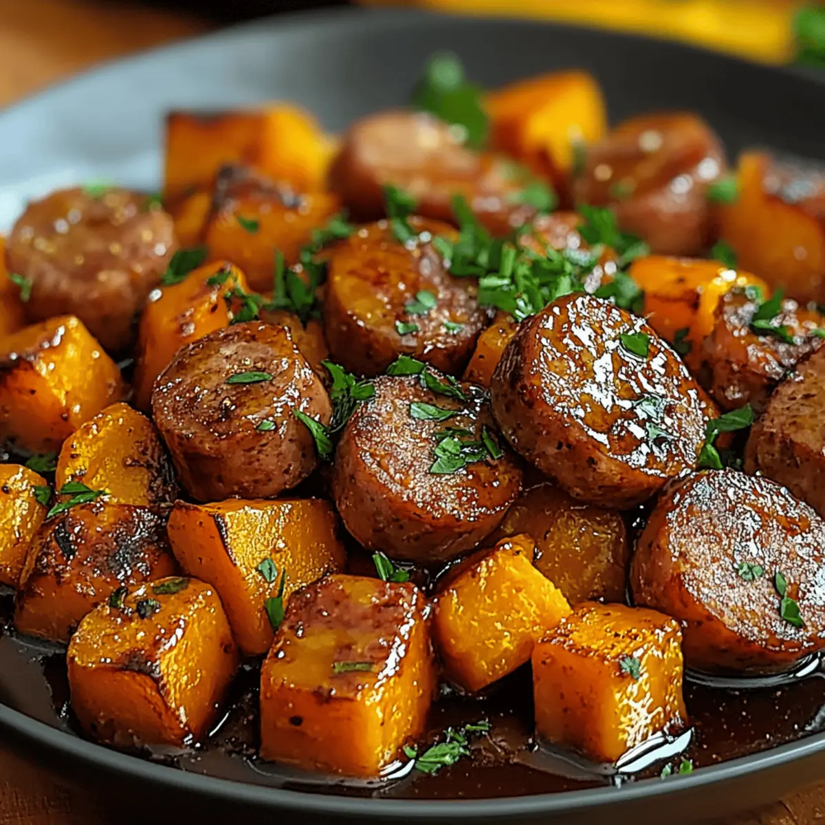 • Dive into the flavors of Sausage and Sweet Potatoes with Honey Garlic Sauce!