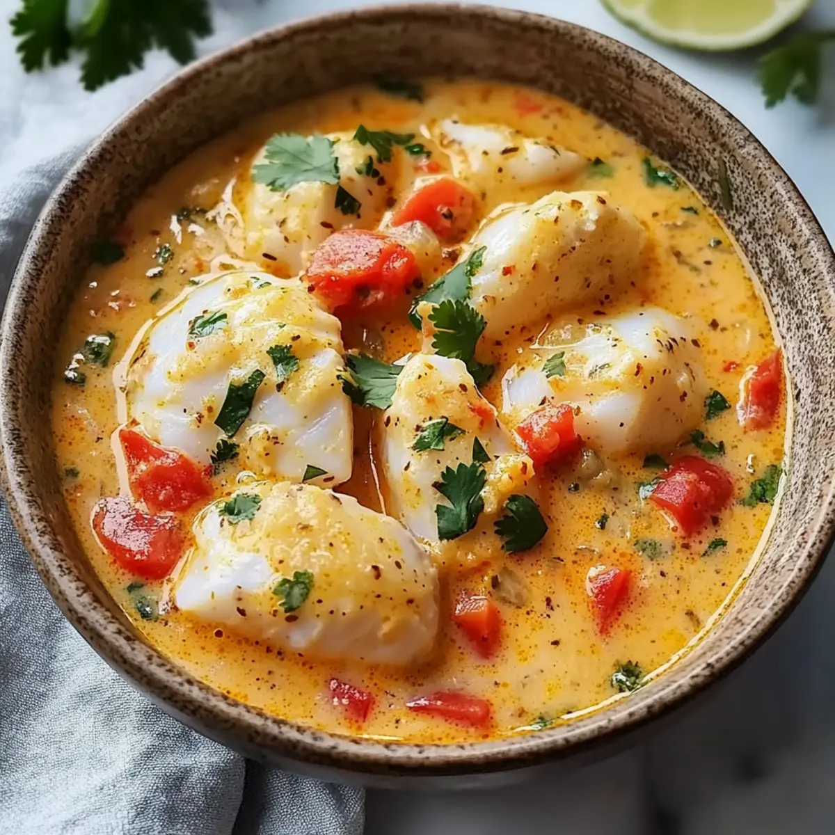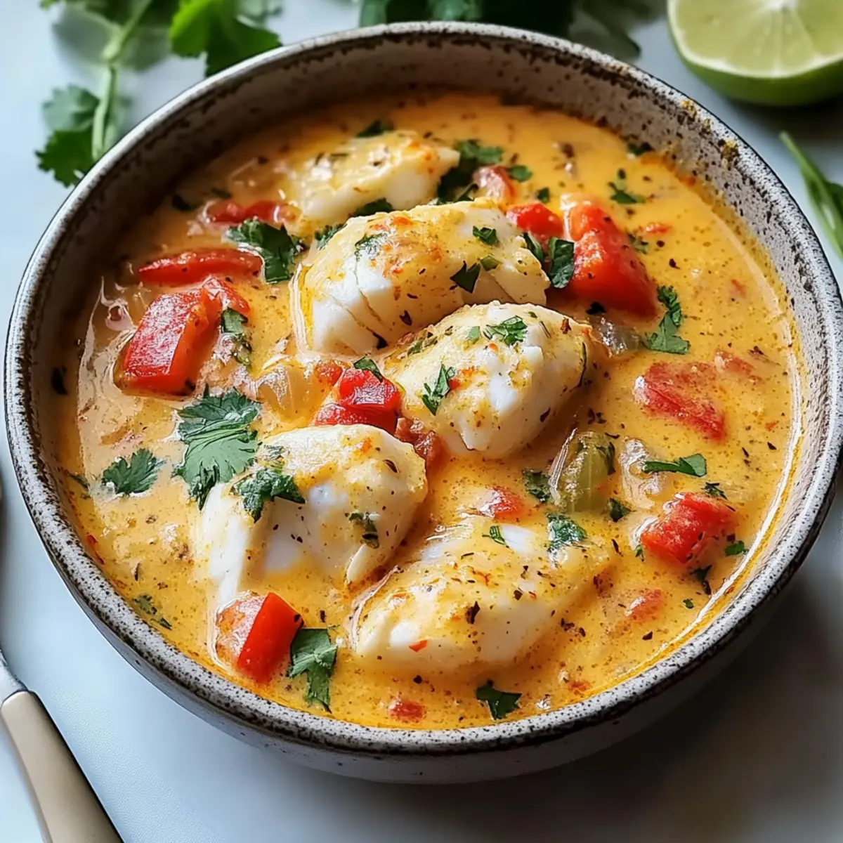Once the fish is cooked, stir in freshly chopped cilantro and an extra squeeze of lime juice to brighten the flavors. Taste and adjust seasoning if needed; the stew should be rich and flavorful. This last step brings the dish together, adding freshness to every bite.