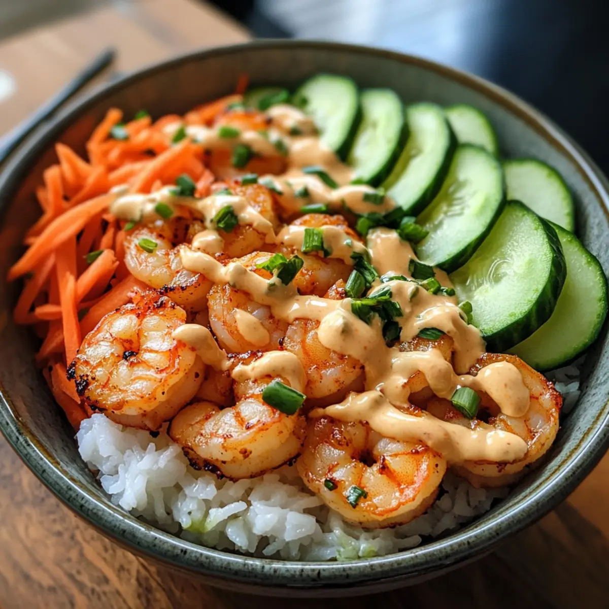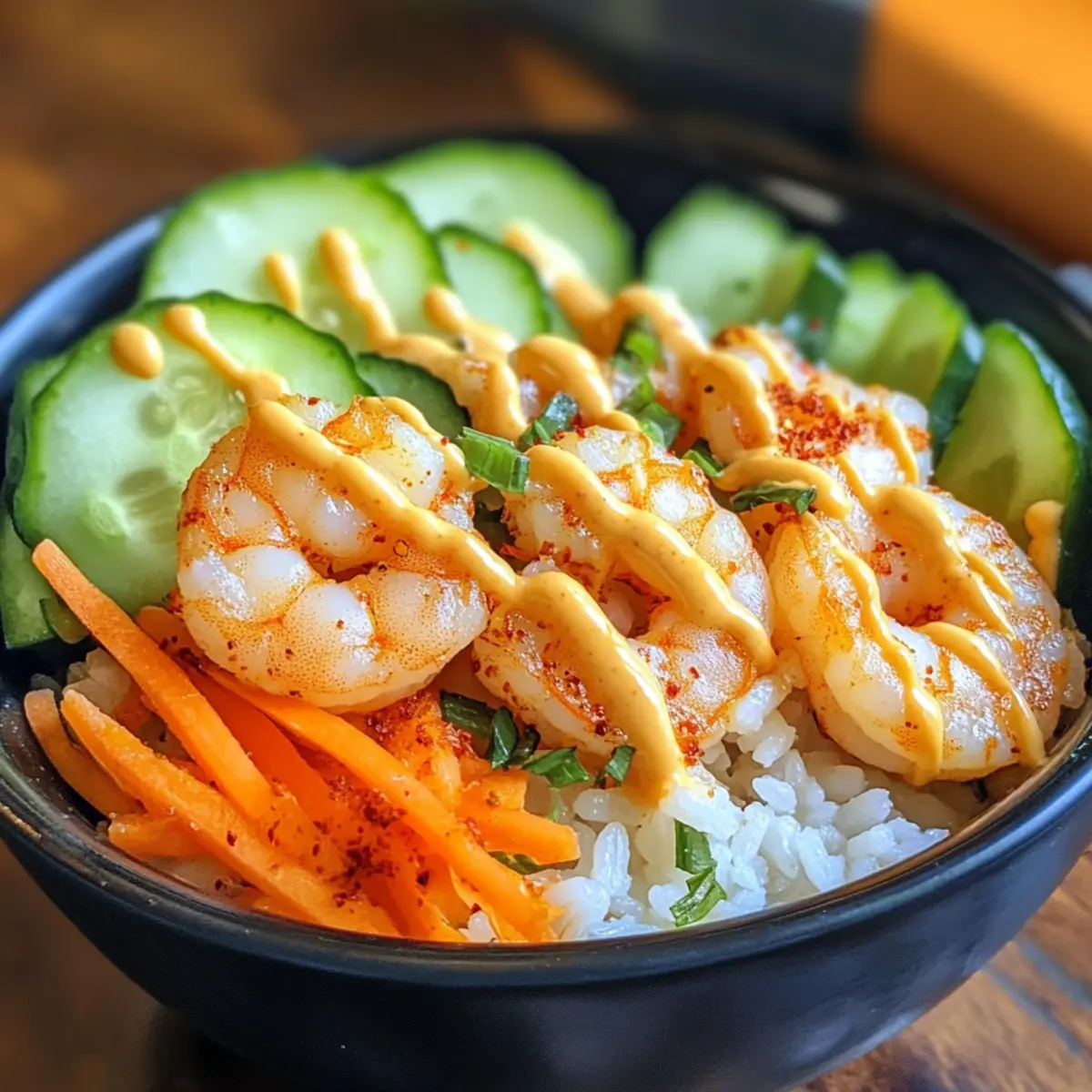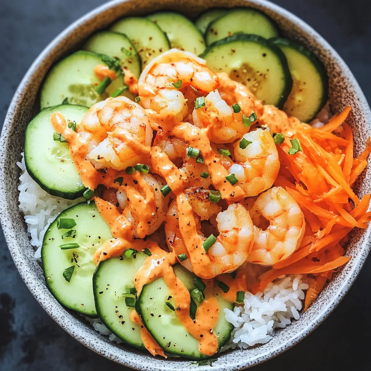 Cucumber Salad: A refreshing side that adds crunch and lightness, balancing the richness of the spicy mayo and succulent shrimp.
