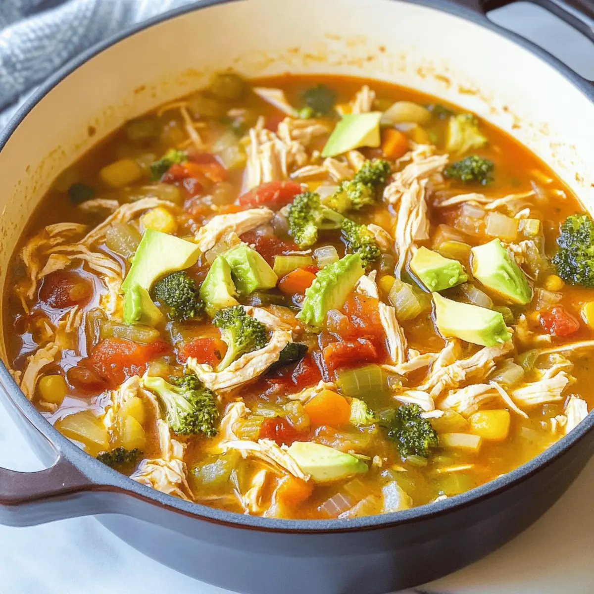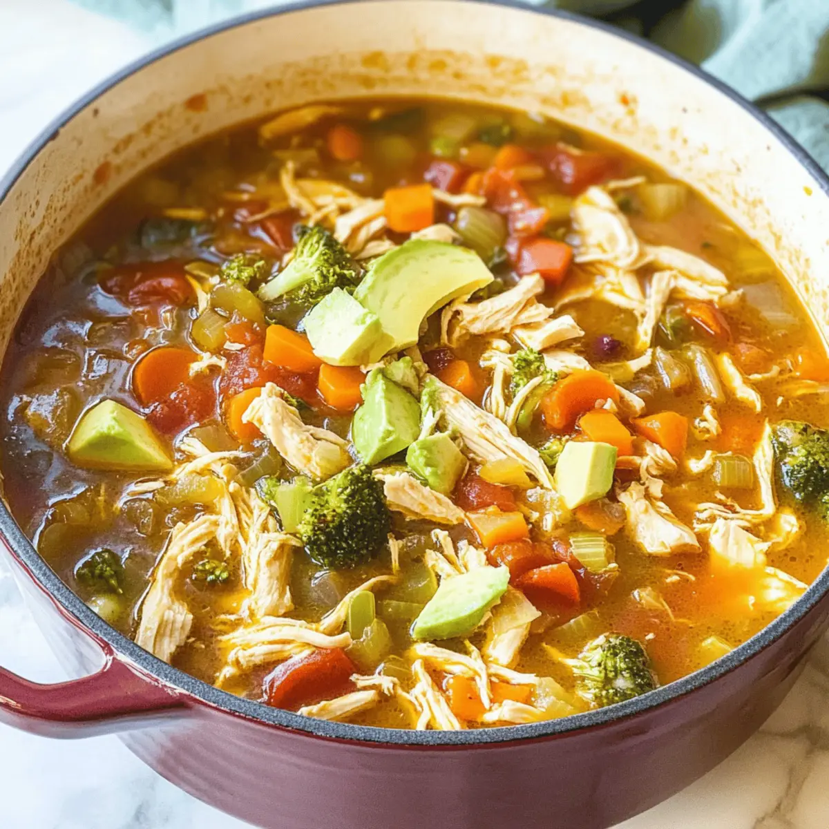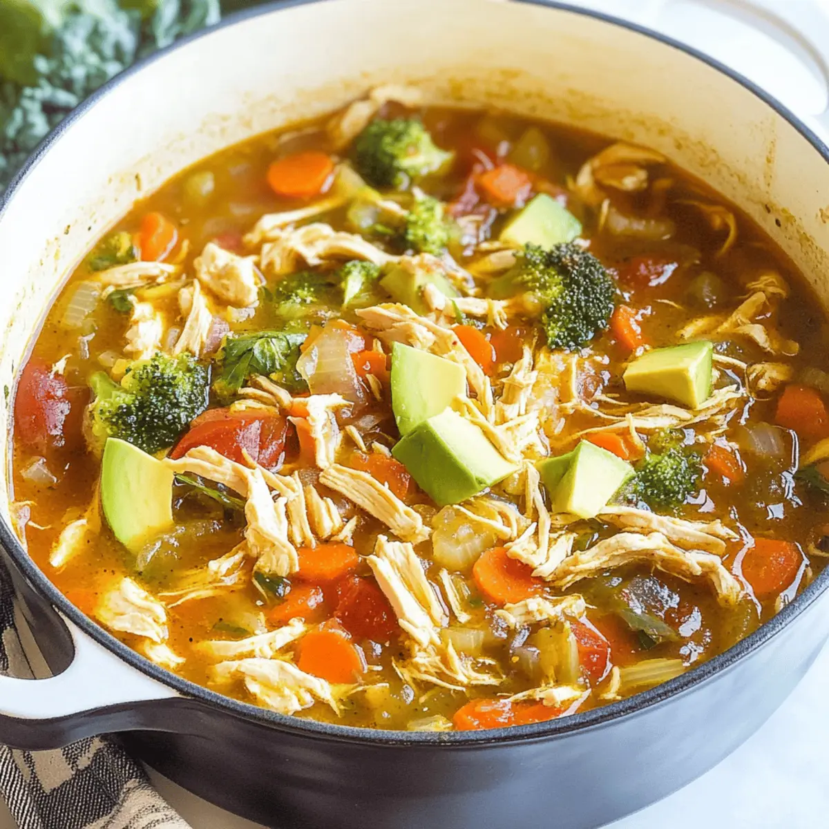 Absolutely! When selecting ingredients for your Southwest Chicken Detox Soup, look for firm, vibrant vegetables. Carrots should be bright orange without dark spots, while cabbage should be crisp and green. Fresh garlic should be plump and free from sprouting, and chicken breasts should look pink, not gray. If you’re using avocados, opt for ones that yield slightly to gentle pressure, indicating ripeness for that creamy topping!