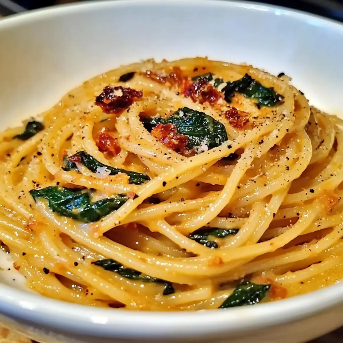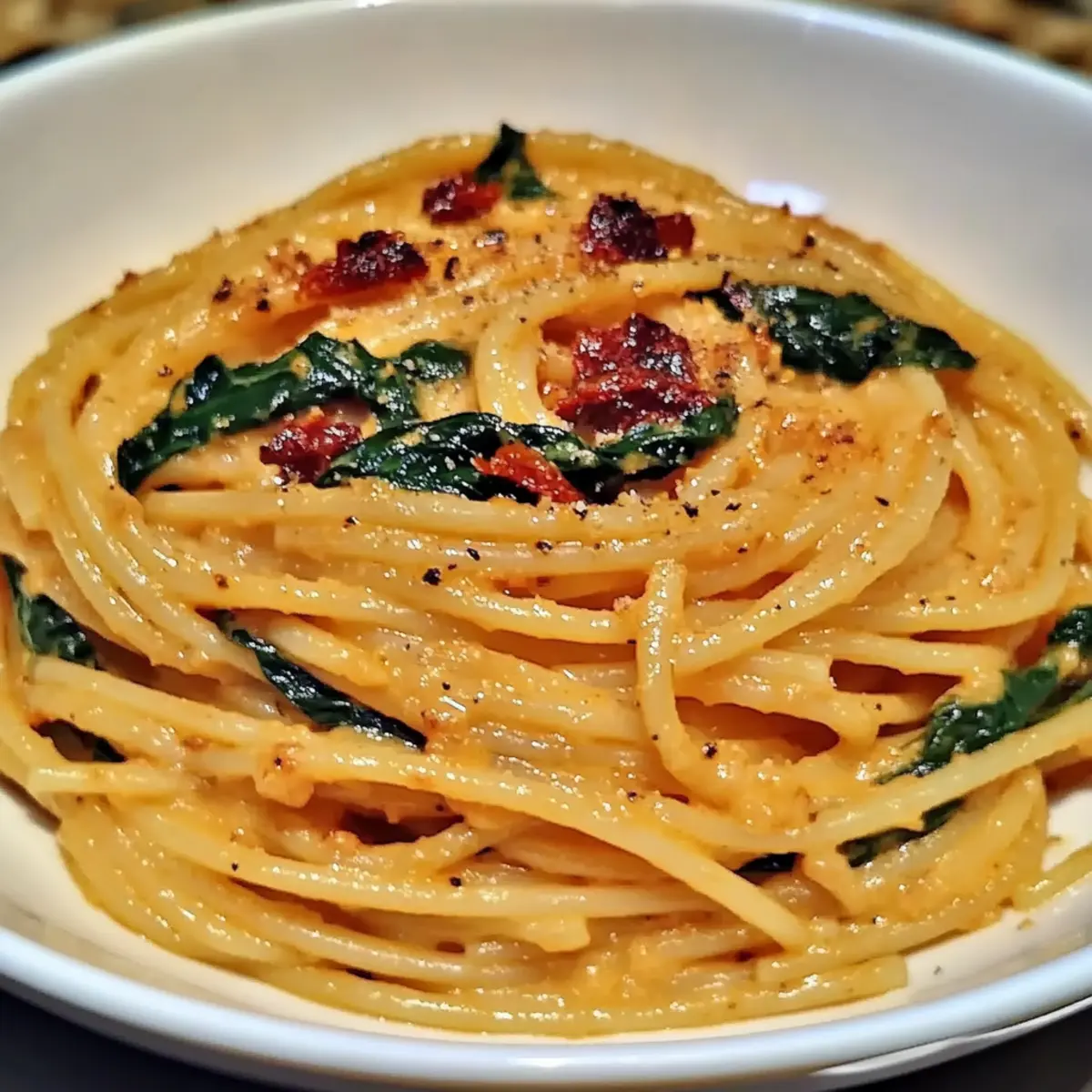 Creamy Spaghetti & Spinach with Sun-Dried Tomato Sauce Delight