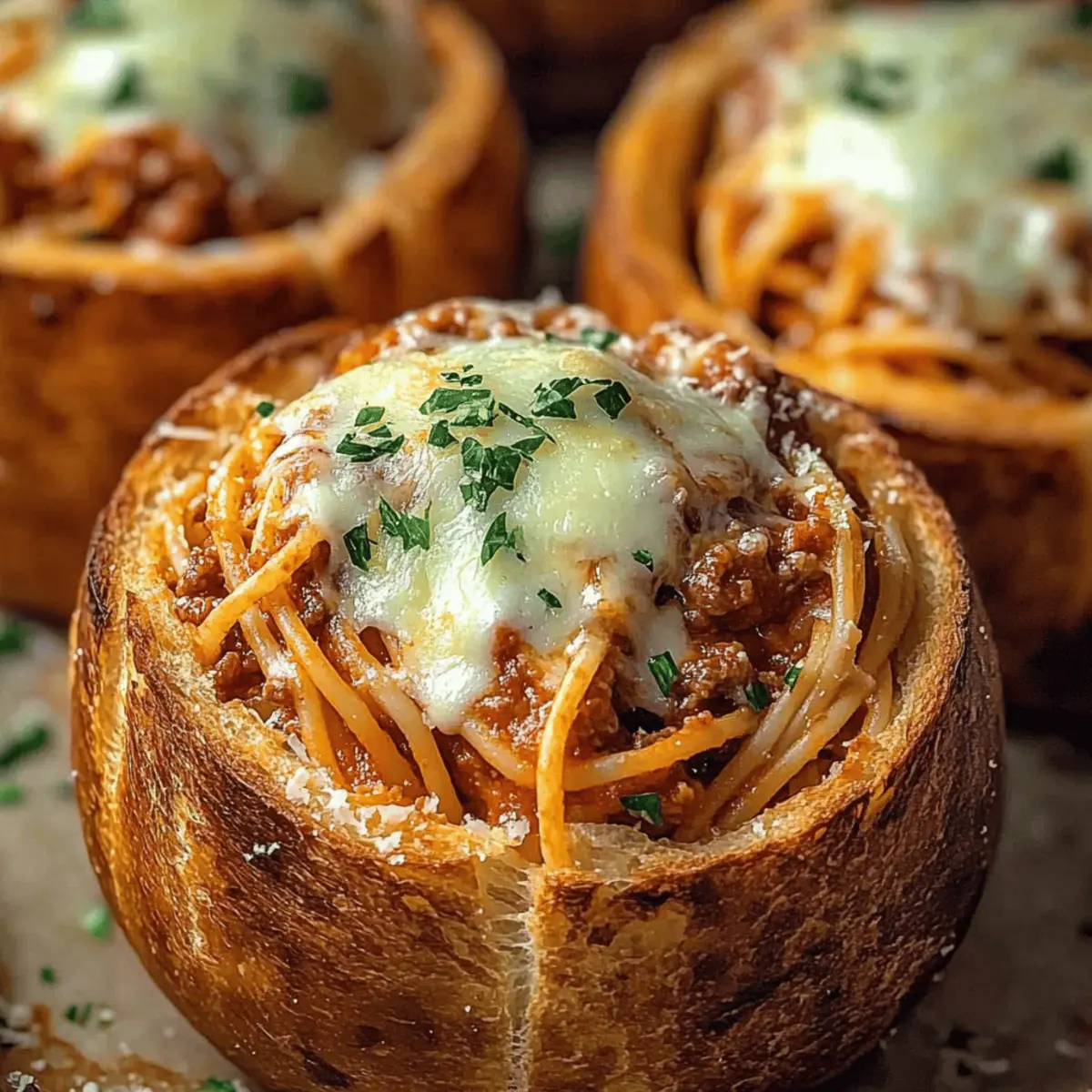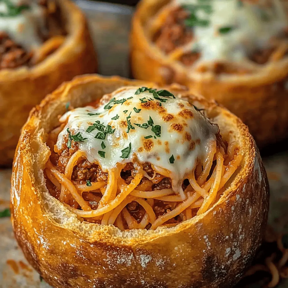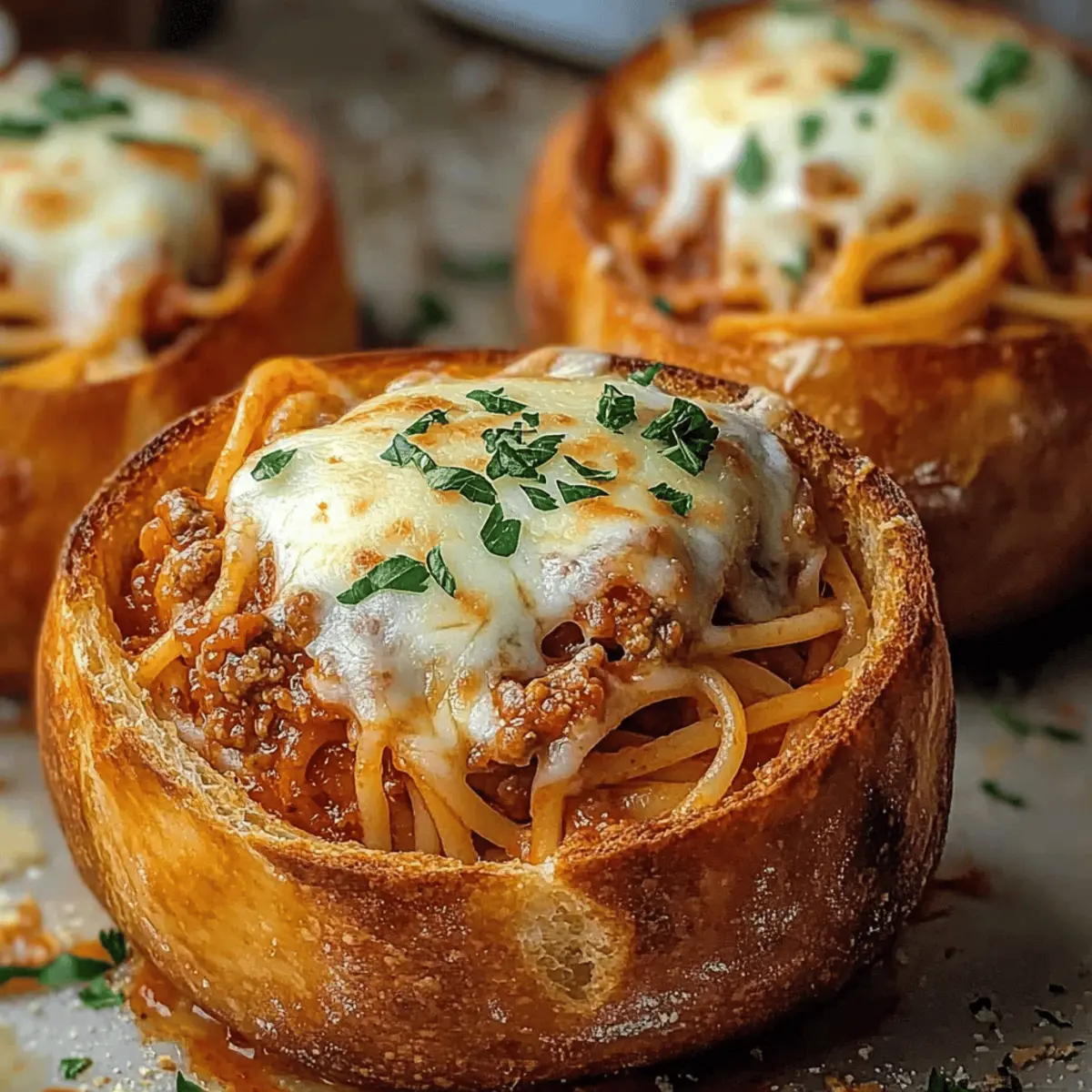 Spaghetti Garlic Bread Bowls bring comfort and joy in every bite, combining crispy bread with savory spaghetti—a delightful interactive dining experience.