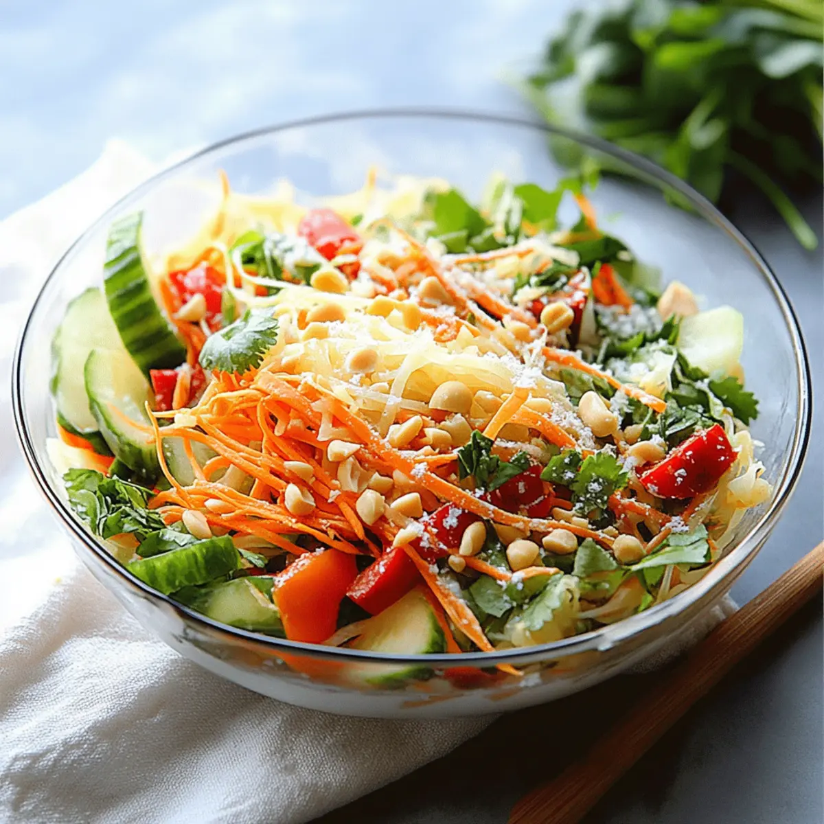 • Cabbage Base: Use shredded Napa cabbage in place of or alongside the noodles for extra crunch. It adds a delightful texture while elevating the freshness of the salad.