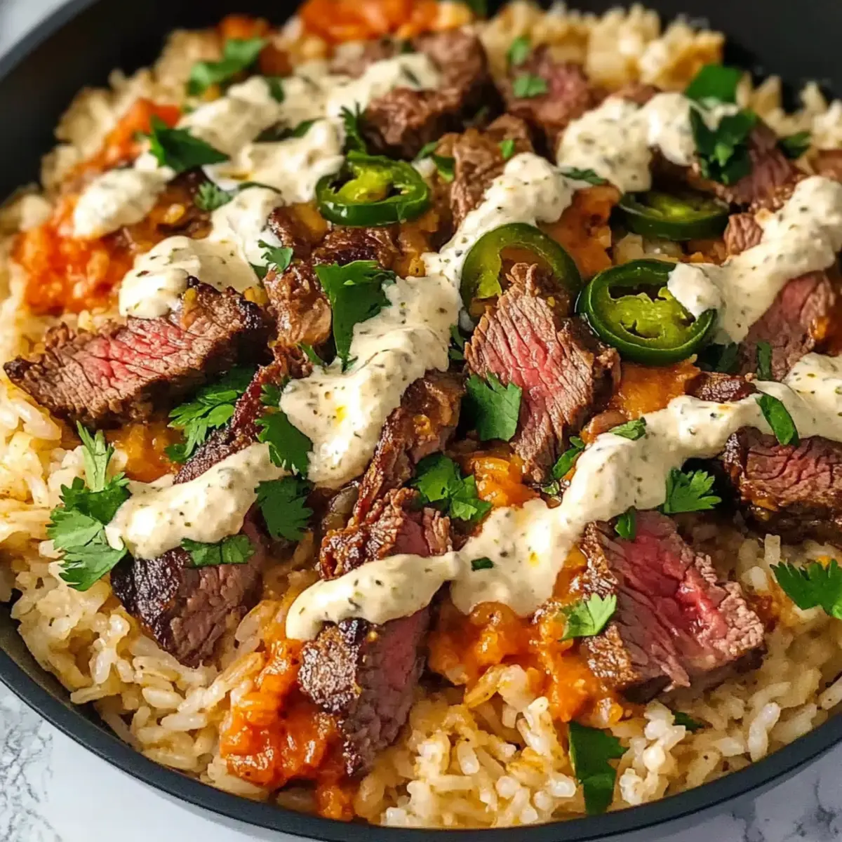 Crowd-Pleaser: Perfect for family dinners or gatherings, this Steak Queso Rice is sure to impress and satisfy even the pickiest eaters.