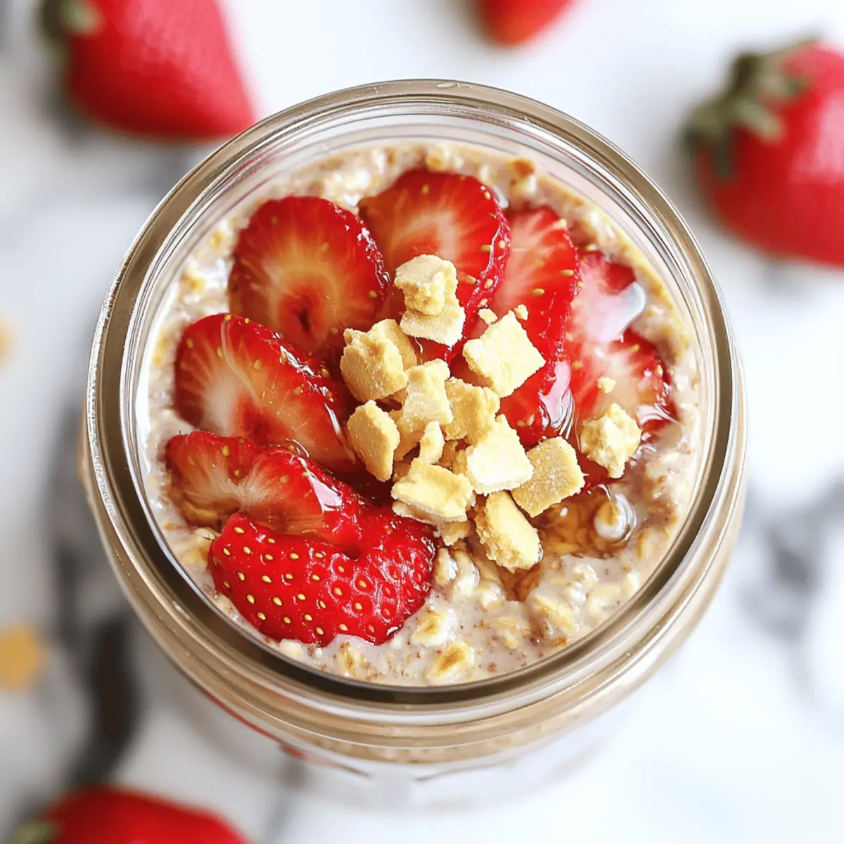 These Strawberry Cheesecake Overnight Oats are a fantastic choice for meal prep enthusiasts! You can prepare the base mixture of oats, milk, Greek yogurt, honey, vanilla extract, and cinnamon up to 3 days in advance. Just combine everything in a jar and store it in the refrigerator to maintain freshness. For the best results, layer in the sliced strawberries and crushed graham crackers just before serving to keep them bright and crunchy. When you’re ready to enjoy, simply stir the mixture, add additional toppings if desired, and it’s ready! With this approach, your mornings can be stress-free and deliciously rewarding, keeping the spirit of homemade food alive.