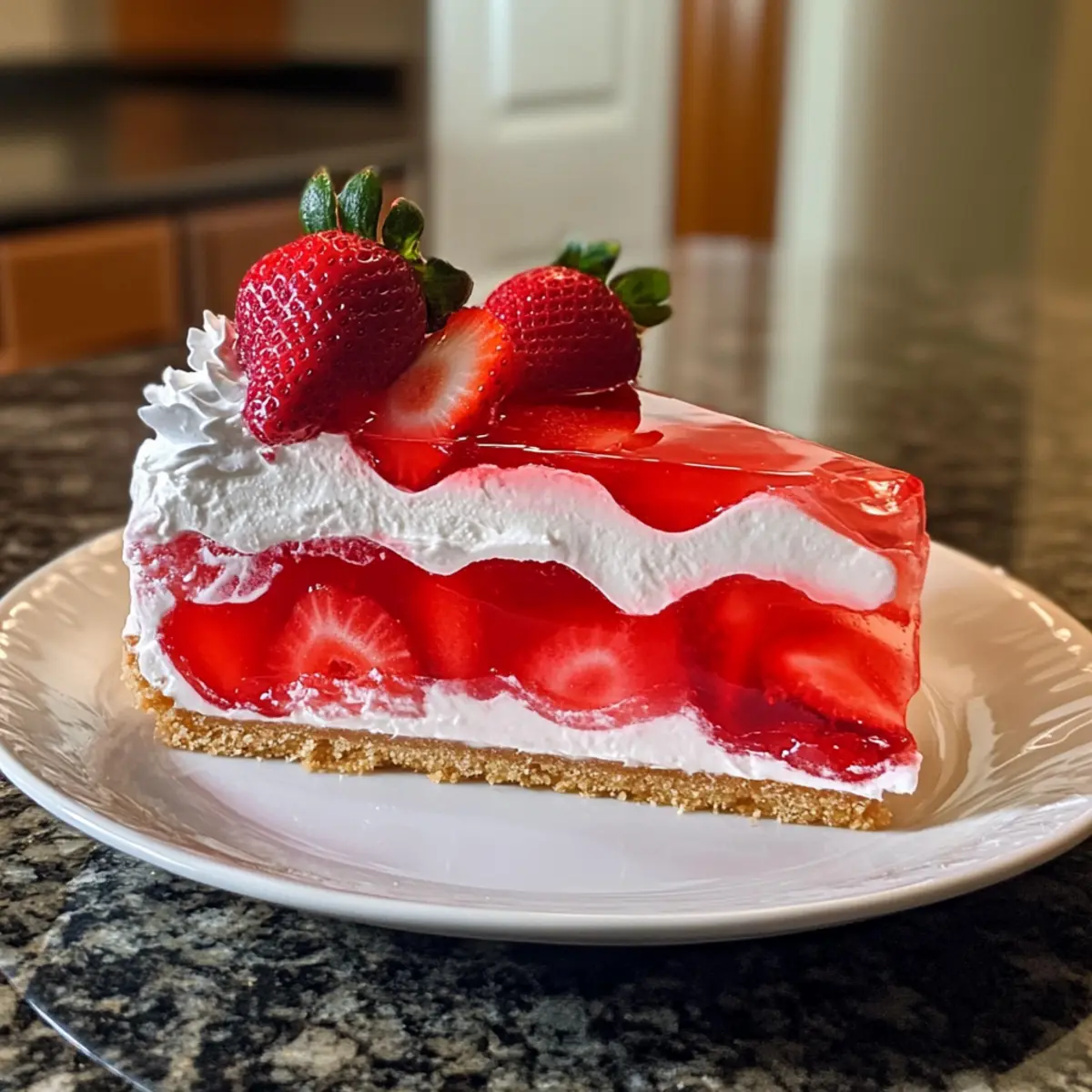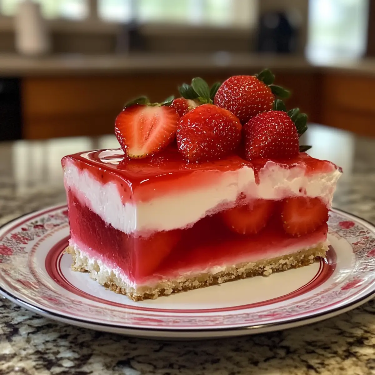 • Cherry Delight: Swap strawberry Jello for cherry Jello, topped with sliced cherries for a fruity twist. The vibrant red color is just as eye-catching!
