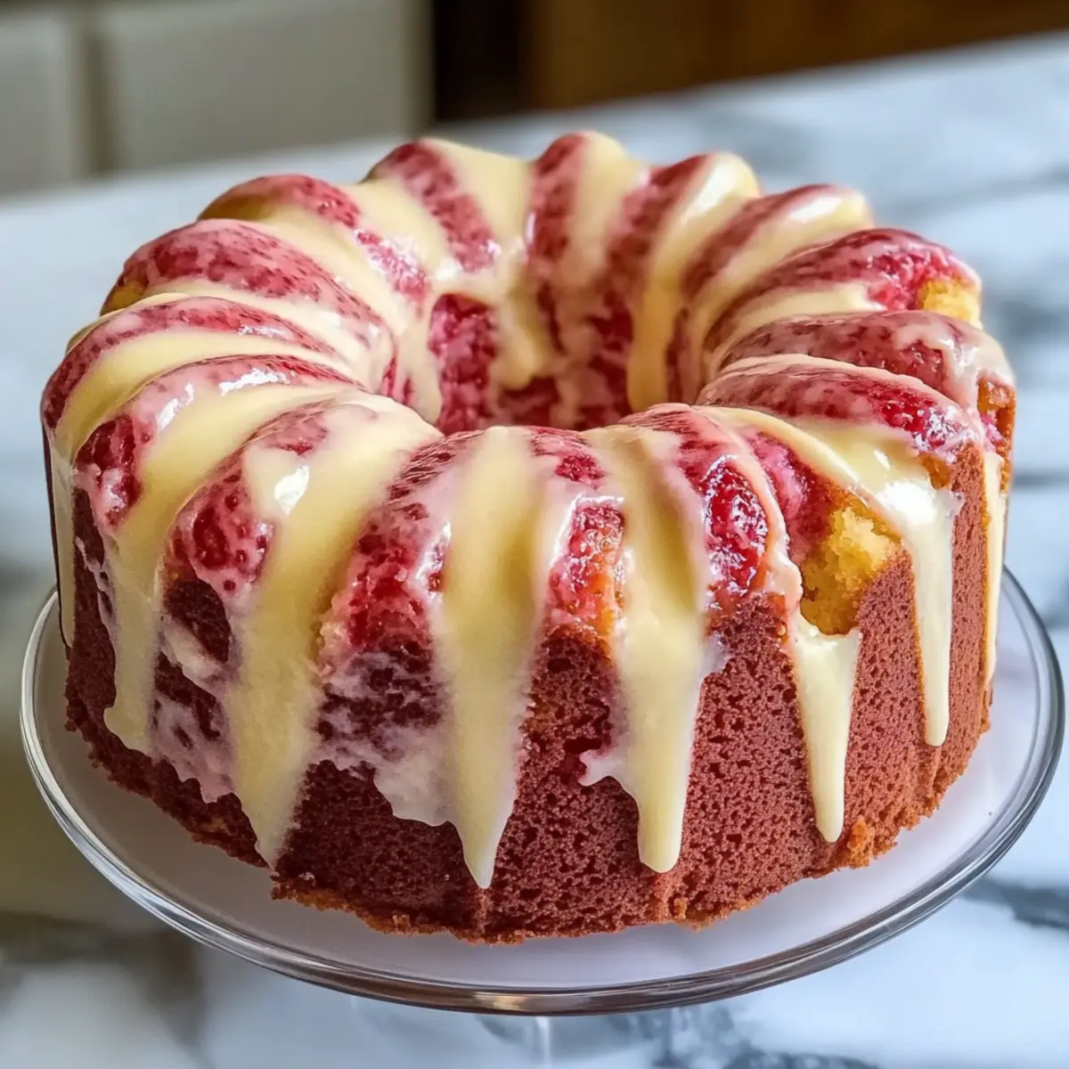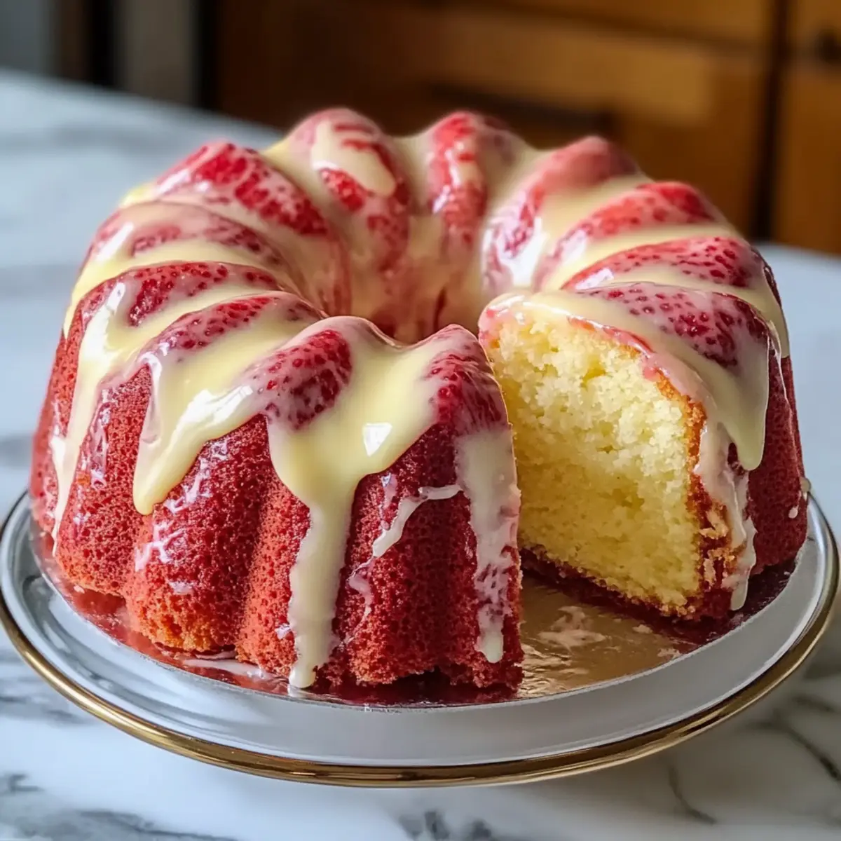 Once the cake has cooled completely, drizzle the strawberry glaze evenly over the top, allowing it to seep into the crevices. You can use a spoon or a piping bag for an elegant touch. The glaze not only adds sweetness but also enhances the visual appeal, making your cake irresistible!
