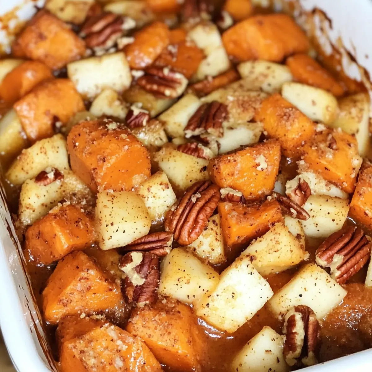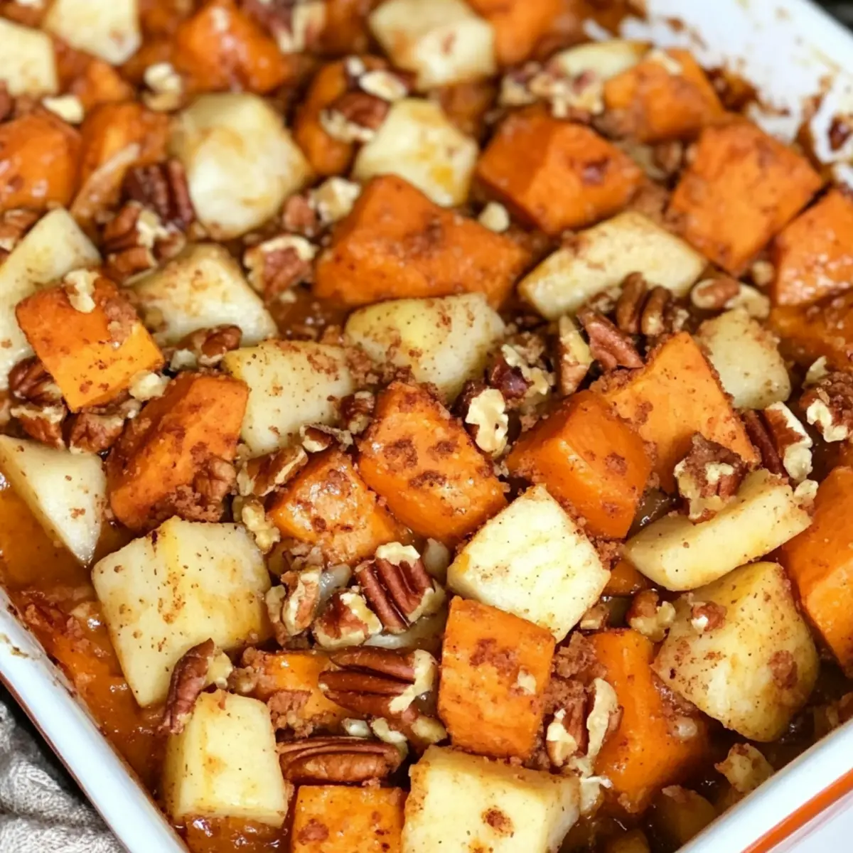 As the aroma of cinnamon and nutmeg fills the kitchen, I can’t help but smile thinking about the delightful Sweet Potato and Apple Casserole that has become a staple in our holiday meals. This dish beautifully balances sweet and savory flavors with the warmth of pumpkin pie spice, transforming simple ingredients into something truly special. Not only is it strikingly beautiful, making it the perfect centerpiece for your festive table, but its easy preparation means you won’t be spending hours in the kitchen. Imagine how your friends and family will delight in each creamy bite, complemented by the satisfying crunch of pecans on top! Are you ready to bring a unique twist to your holiday spread?