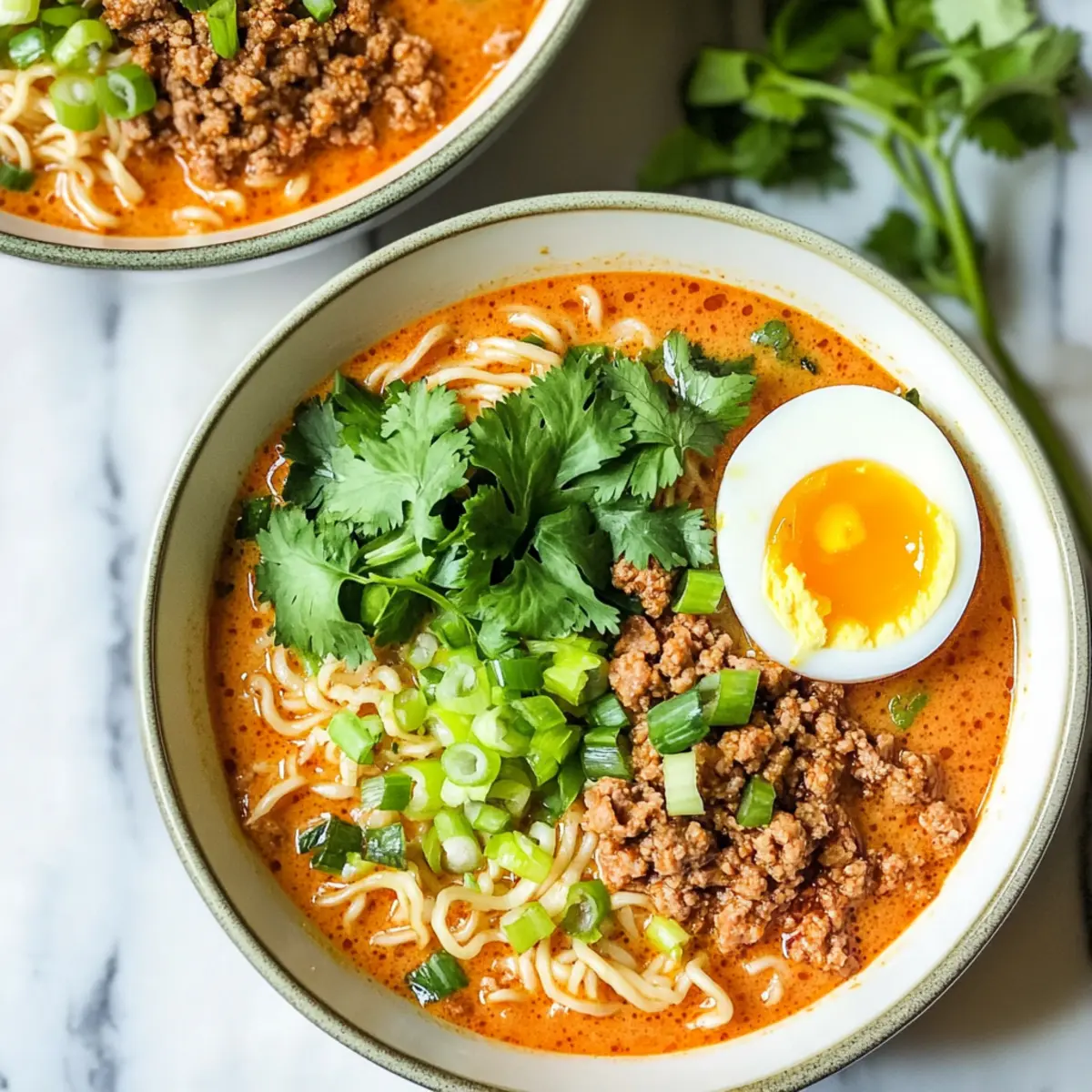 Comfort in a Bowl: Enjoy a cozy, satisfying meal that combines hearty noodles with creamy broth and soft-boiled eggs for a delightful twist.