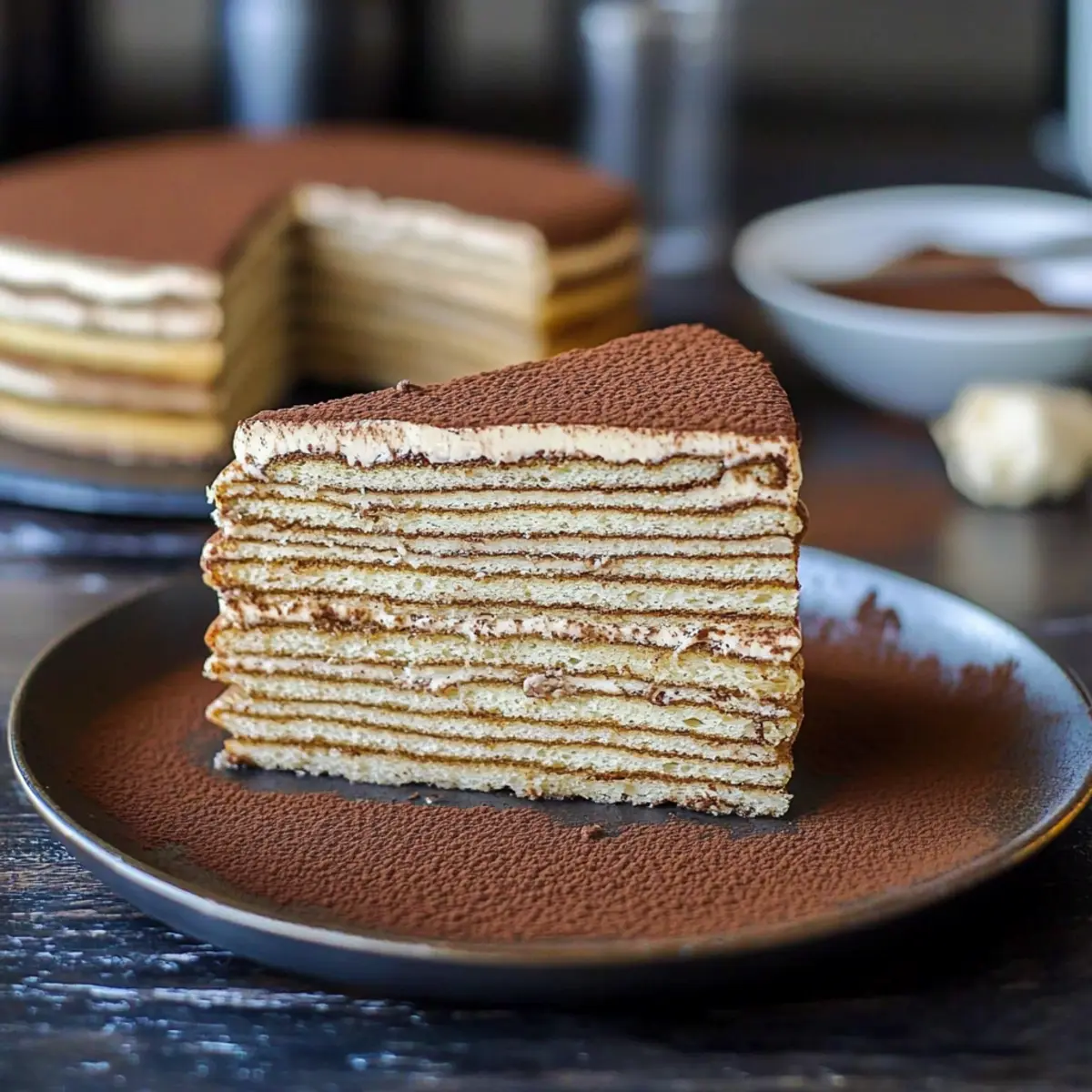 Stunning Presentation: Beautifully layered and topped with cocoa powder, this cake is a showstopper that looks as delightful as it tastes! Indulge in the fusion of flavors and textures that make this recipe a must-try for any dessert lover.