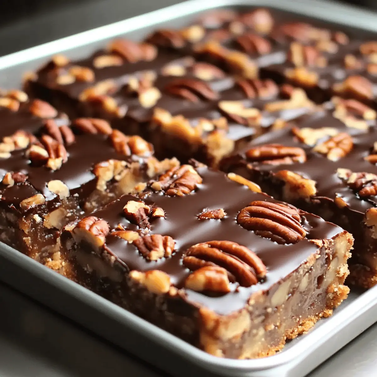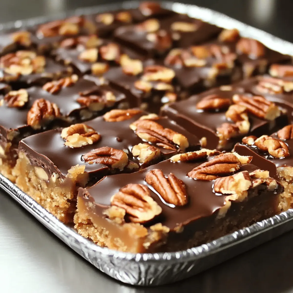 Decadent flavors dance on the palate with a luxurious blend of chocolate, caramel, and pecans that feels gourmet yet effortlessly achievable. Simple to make, you only need a few pantry staples to create this indulgent dessert, ensuring that even novice bakers can shine. Crowd-pleaser appeal: They’re perfect for gatherings, from family dinners to potlucks, guaranteed to impress friends and family alike. Versatile options allow for substitutions like dark chocolate or different nuts, letting you customize based on preference. Lastly, these bars can be made ahead of time, as the flavors deepen and improve when they sit—a sweet surprise waiting for you!