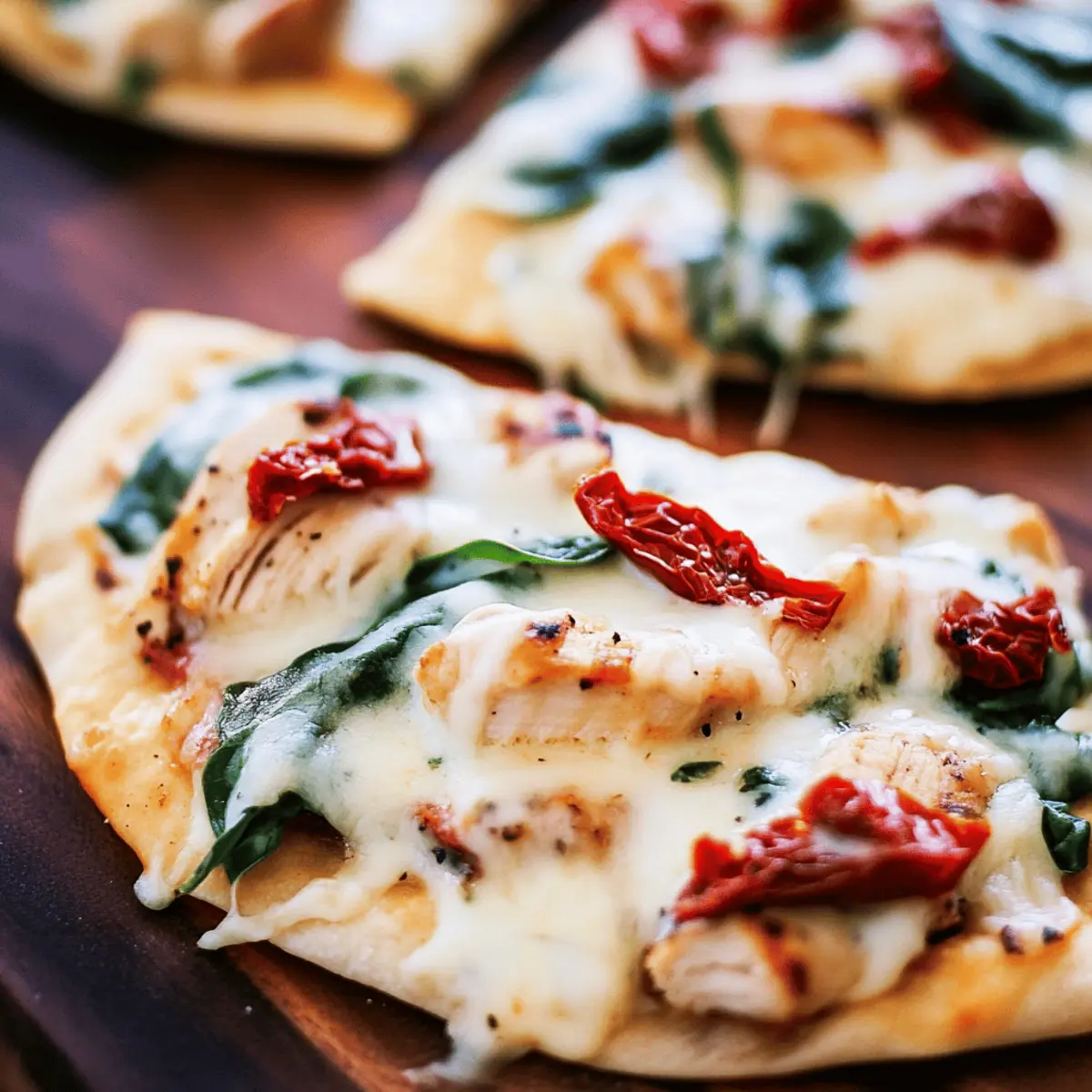 Delicious Tuscan Garlic Chicken Pita Pizzas Ready in Minutes