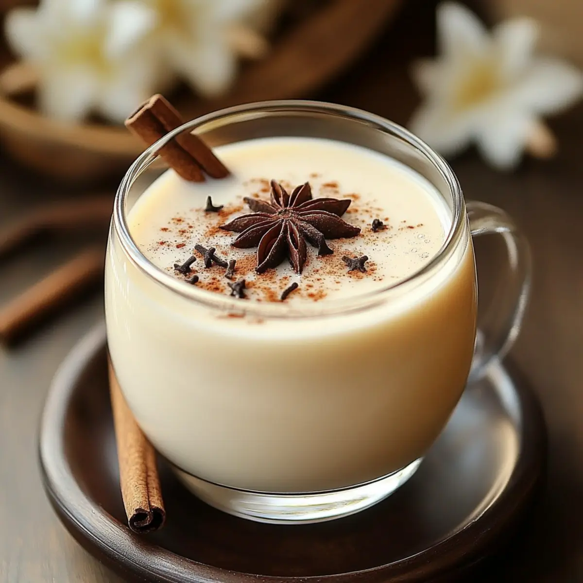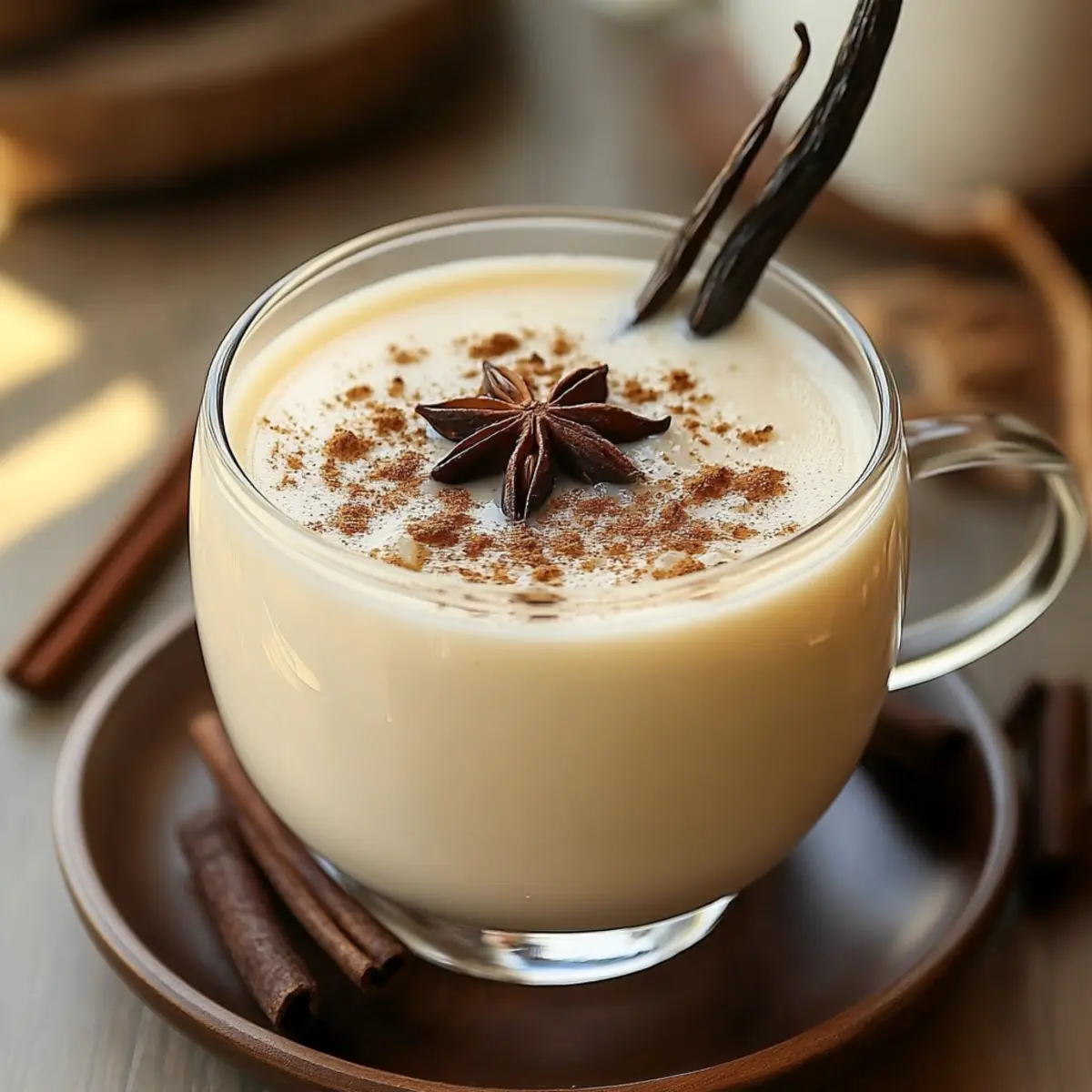 8. For garnish, sprinkle a bit of ground cinnamon on top or add a vanilla bean stirrer.