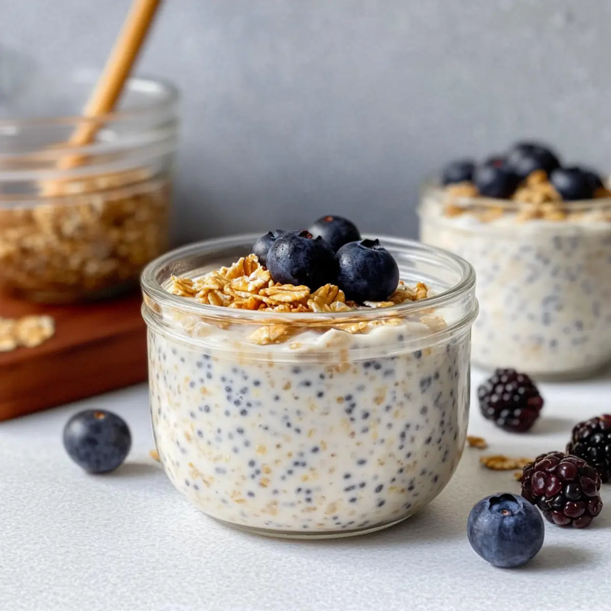 These Vanilla Overnight Oats are a fantastic option for busy home cooks looking to simplify their mornings! You can prepare the oats up to 24 hours in advance, allowing them to soak and thicken overnight for a creamy texture. To make ahead, simply mix all ingredients—rolled oats, chia seeds, yogurt, milk, vanilla extract, maple syrup, and a pinch of salt—and transfer the mixture into an airtight container or individual jars. Store them in the refrigerator, ensuring they are well-mixed to prevent clumping. When you’re ready to serve, just give them a gentle stir and top with your favorite fruits or granola. Enjoy the convenience of a nutritious breakfast waiting for you, just as delicious as if you made it fresh!